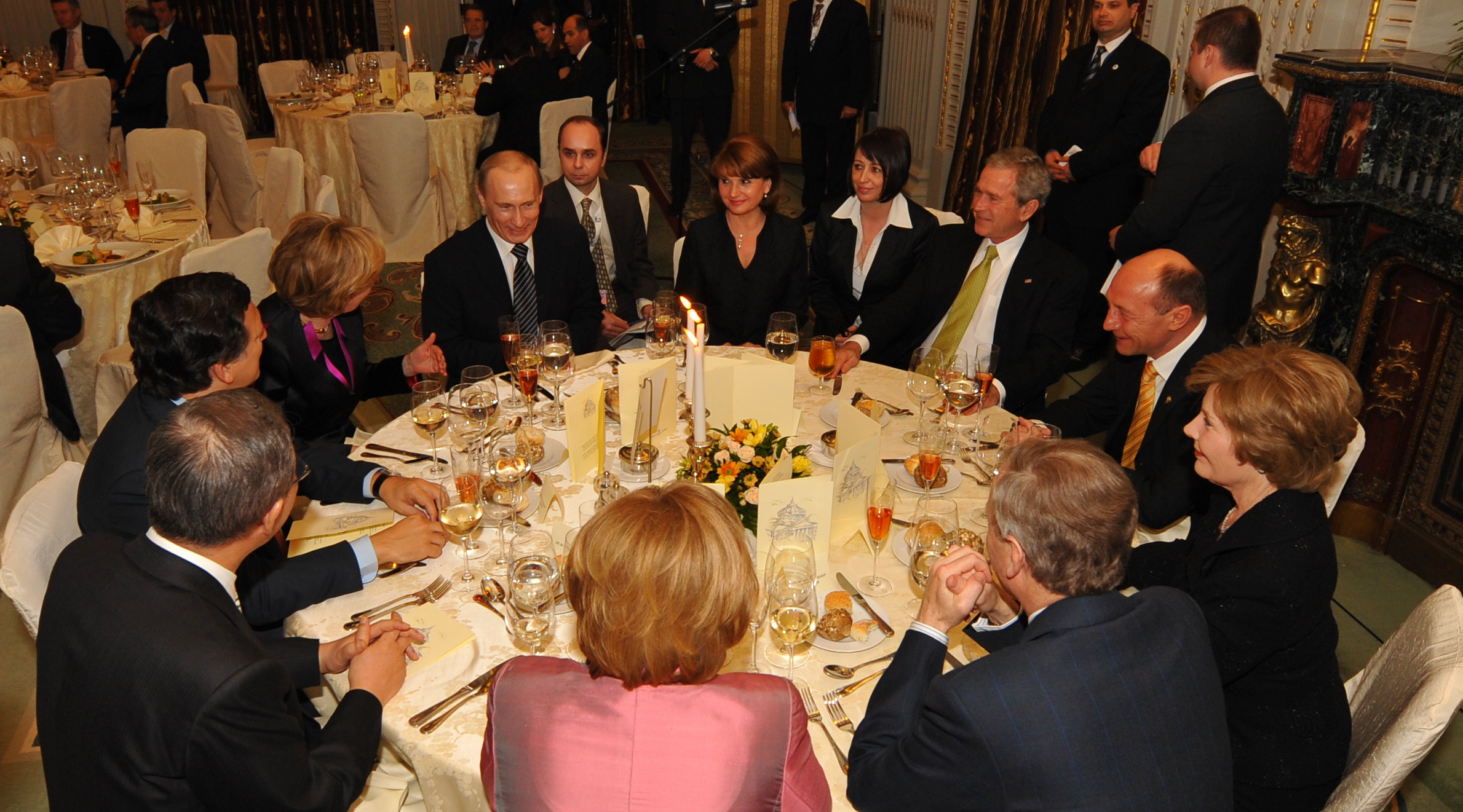Insa cel mai important moment din 2008, pentru Romania, este organizarea summitul NATO la Bucuresti – eveniment care aseaza Romania la masa cu cele mai mari puteri militare ale lumii. Presedintele Basescu il invita pe George W. Bush sa viziteze limita estica a aliantei, adica litoralul Marii Negre, iar Romania este pentru cateva zile in centrul atentiei intregii lumi. Familiile prezidentiale Putin si Bush iau masa cu familia prezidentiala Basescu.
