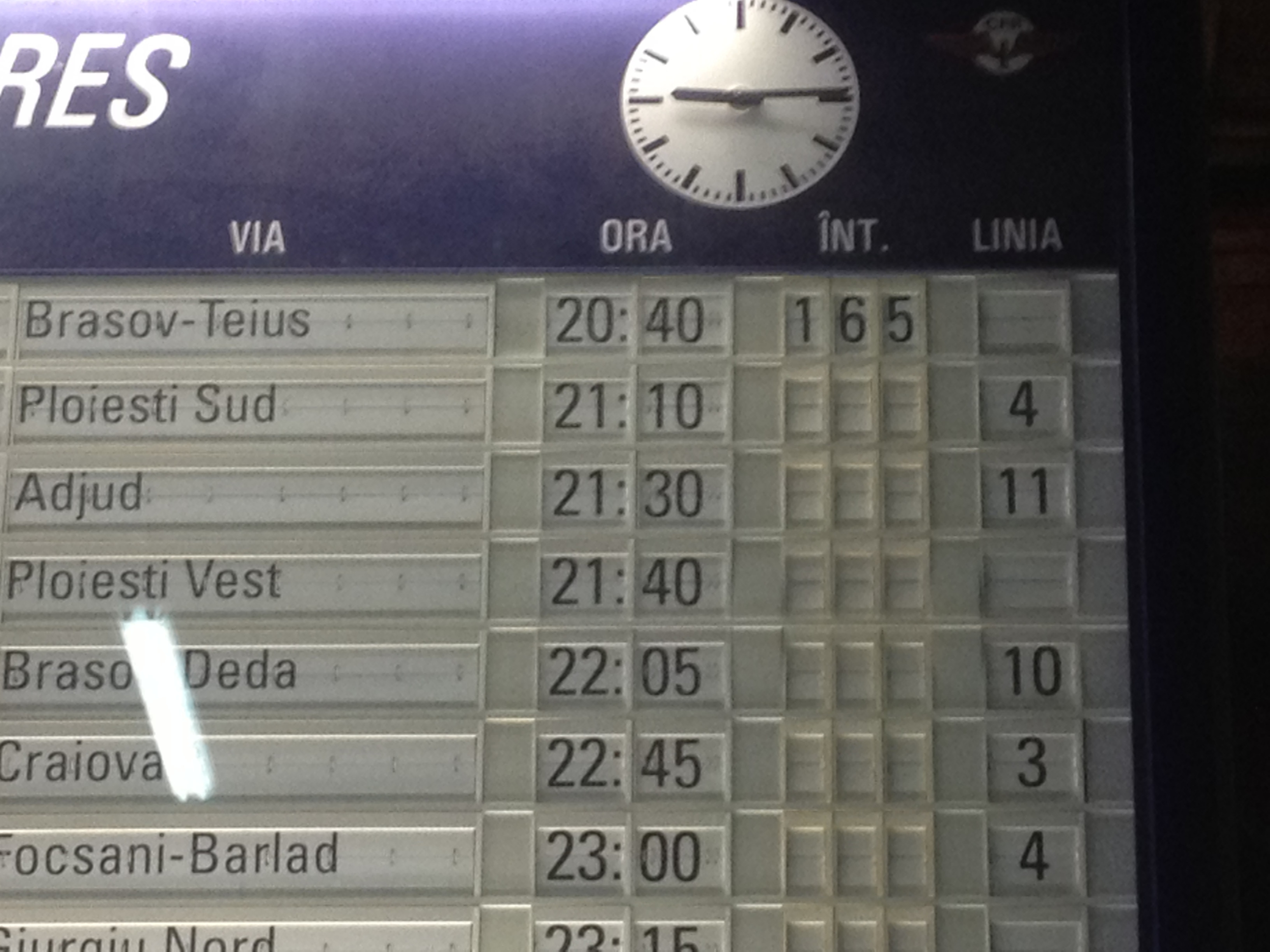 Trebuie asadar sa luam o decizie. Mai stam 3 ore in gara si inca 3 pe drum si ajungem la Brasov pe la 3 dimineata, sau renuntam la bilete si ne intoarcem acasa? Varianta B inseamna ca hotelul pierde 2 nopti de cazare, iar restaurantele din Piata Sfatului cel putin un pranz si o cina. Suntem la o fractiune de secunda de a face cale intoarsa. Gasim insa o solutie de compromis, ne rugam de casiera si ne schimba biletele pentru rapidul de 21.00 (nu e simplu, implica multe date completate intr-un caiet comunist, niste semnaturi si o stampila).