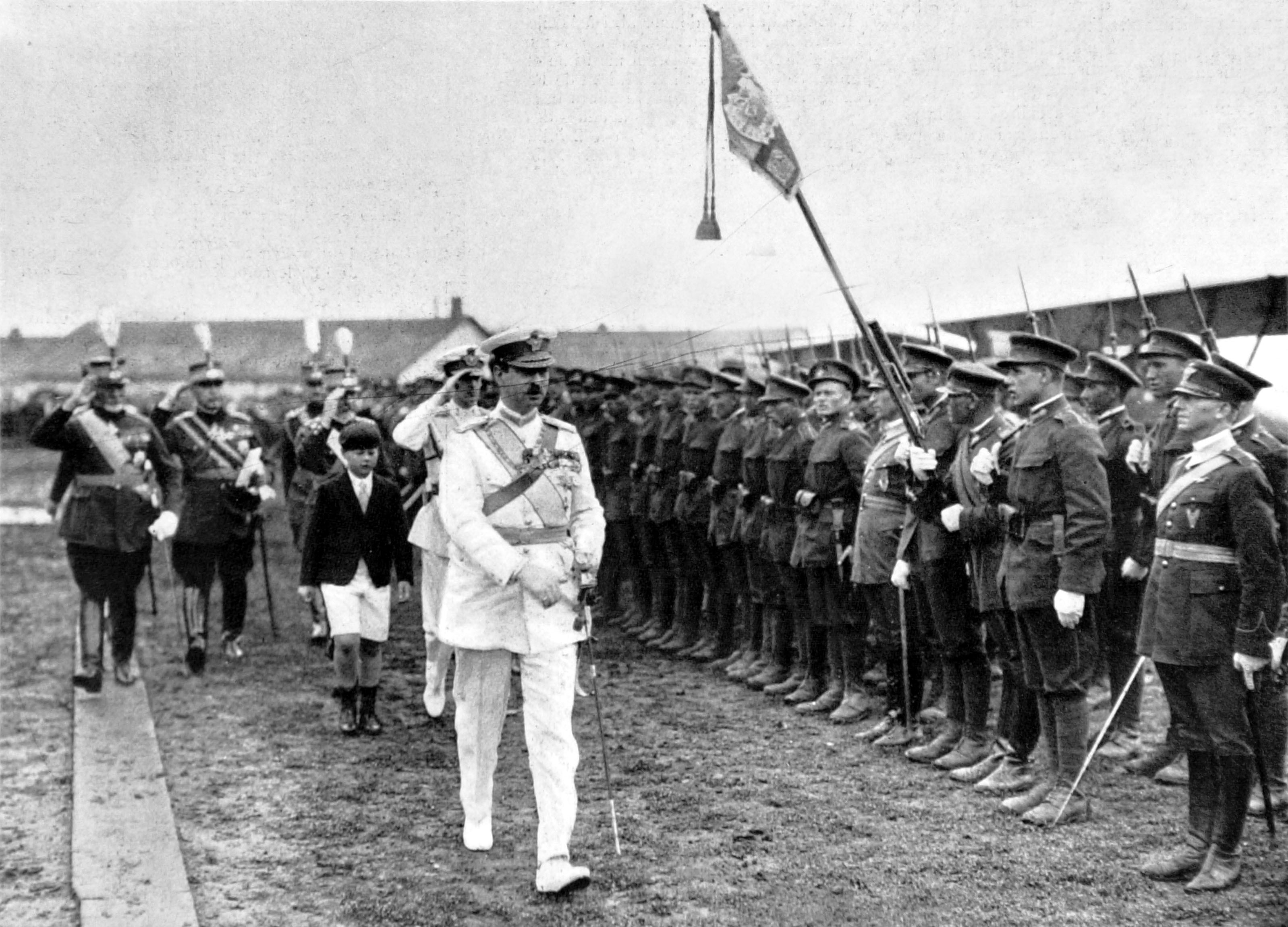 Imagine Getty: 1921 - Ilustratia cu momentul in care Regele Mihai primeste onoruri la varsta de 5 ani, avand-o alaturi pe Regina mama, Elena a Greciei.