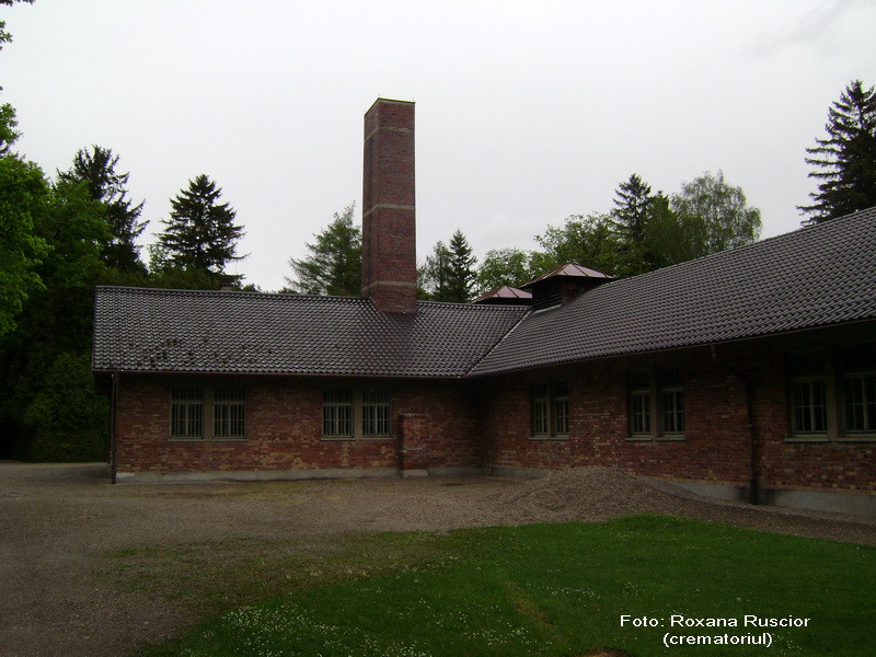 Zgribulti de ploaia marunta, turistii merg anevoie prin noroiul amestecat cu pietris. Se indreapta, cu pasi ezitanti, parca tematori, spre cel mai sinistru loc din acest lagar: crematoriul, care include si camera de gazare.