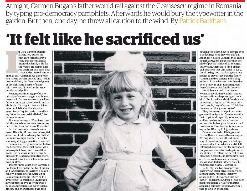 Guardian din Anglia prezinta povestea familiei Bugan, vanata de Securitate dupa ce Ion, tata si sot, a ales sa protesteze in strada in 1983 impotriva regimului Ceausescu.
