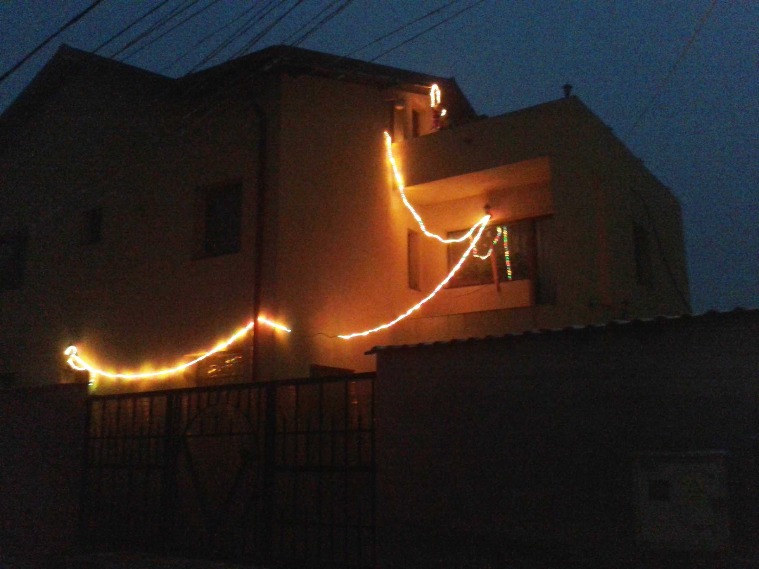 Spanzurat in graba de balustrada balconului, furtunasul luminos se vede cu usurinta din strada, plus ca va lumineaza muraturile din balcon. Infasurat pe gard, pe un pom sau pe un stalp electric, furtunasul luminos arata tuturor ca acolo locuieste un om sensibil, indragostit de frumos si posedat de Spiritul Craciunului. Asta nu e traditie? Vezi aici istoria bradului de Craciun si fa-ti singur o parere.