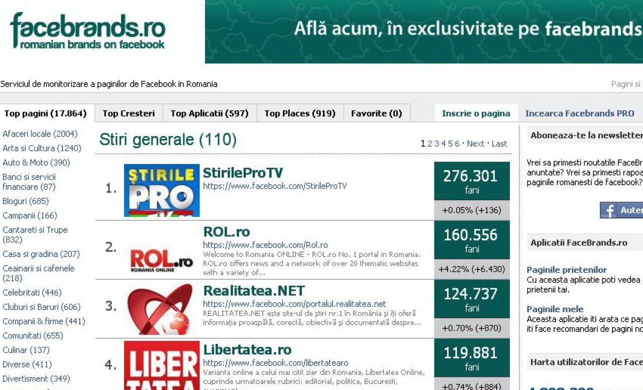Lider pe Facebook la "Stiri generale" in Romania