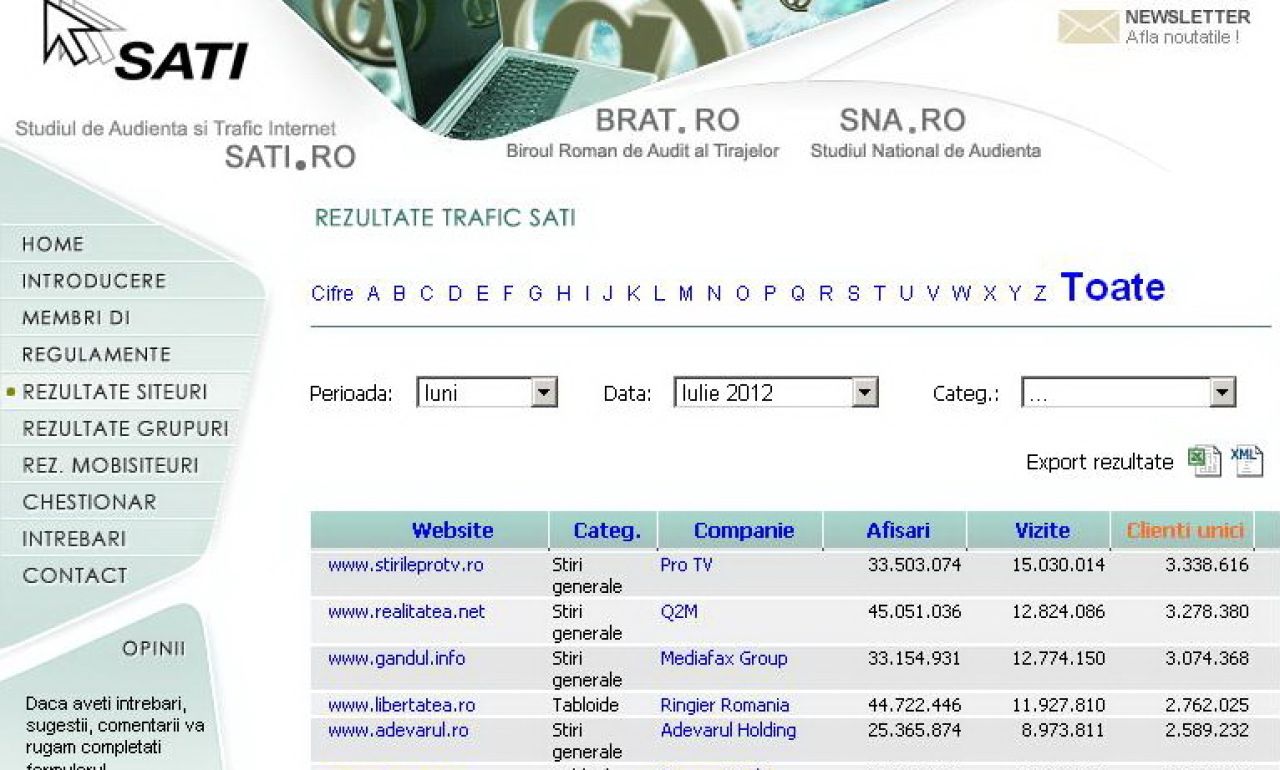 STIRILEPROTV.RO, trafic record in clasamentul SATI al site-urilor de continut din Romania in iulie