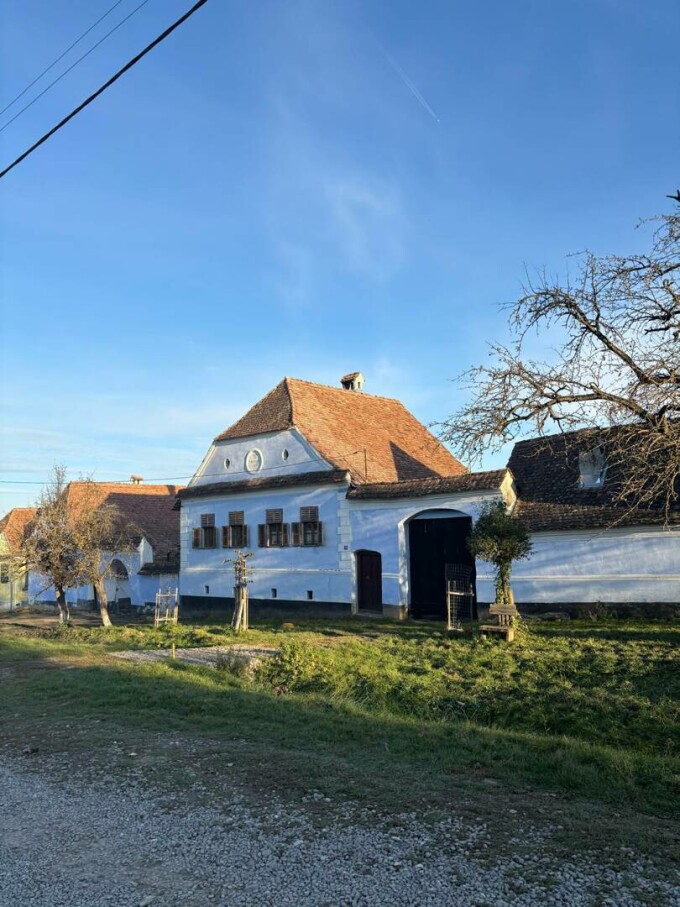 Viscri e o fereastră către timpuri trecute, printre ziduri albe, cu miros de var, lemn vechi și povești din trecut. E un tablou care nu se conservă chiar ușor – dovada e la șantierul din această gospodărie, de la drumul principal.