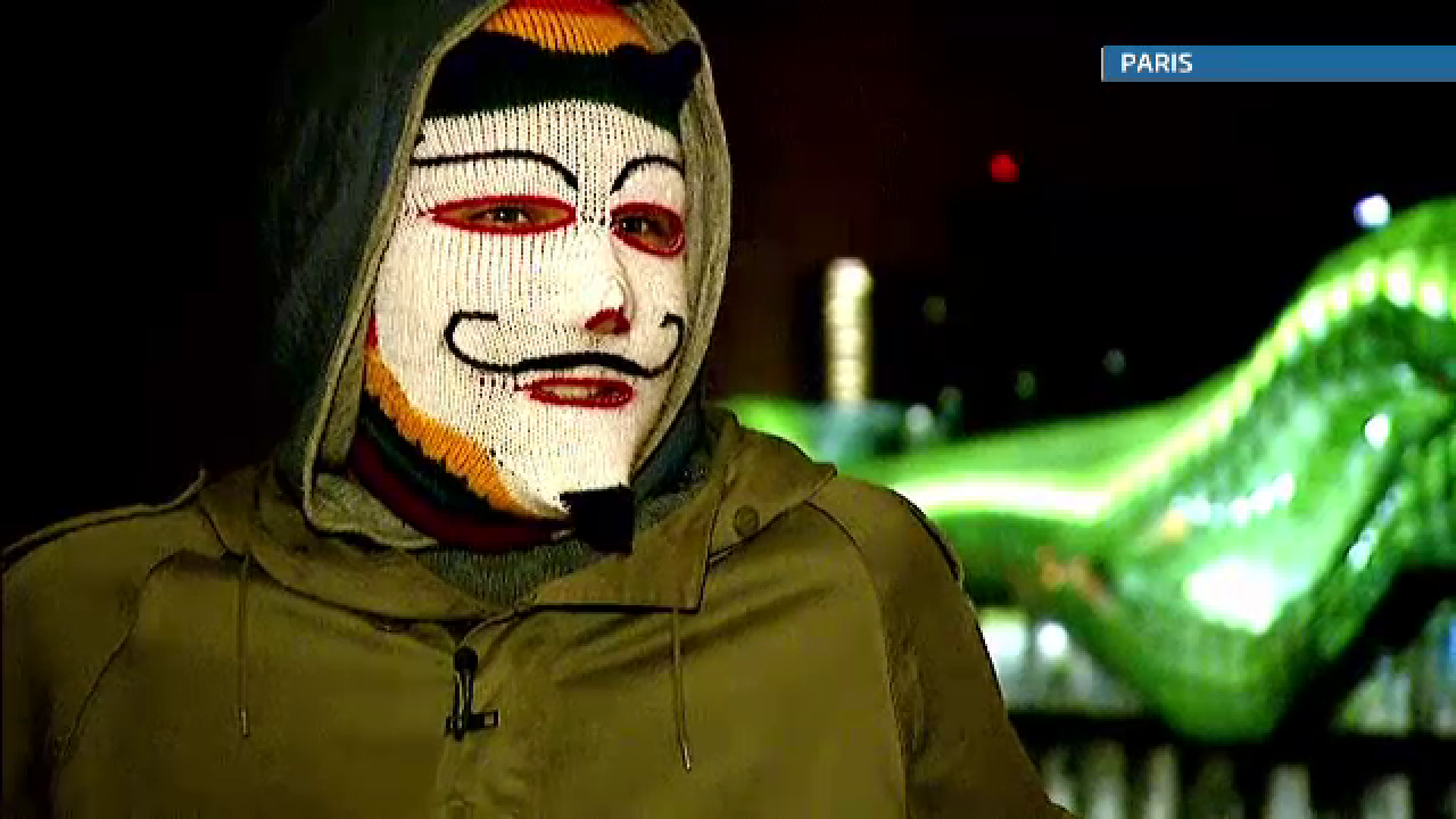 Poarta masca doar ca sa nu-l recunoasca politia si nici oamenii sa nu-i asocieze mesajul cu inevitabilele lui defecte.