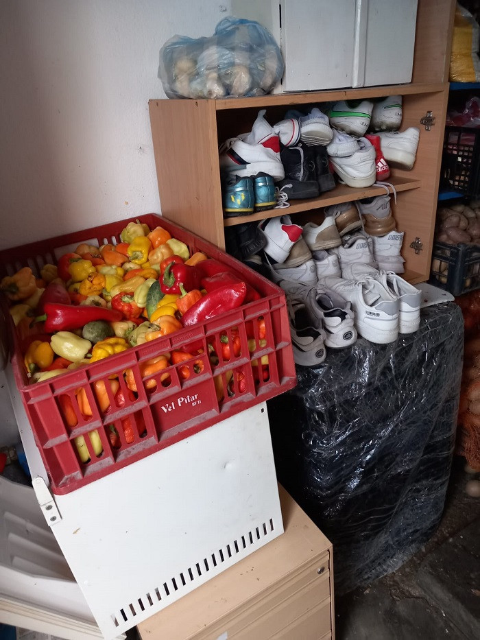 - intr-un beci cu intrarea din exterior, care prezenta mucegai, pereţi crăpaţi, tencuială căzută, erau depozitate alimente