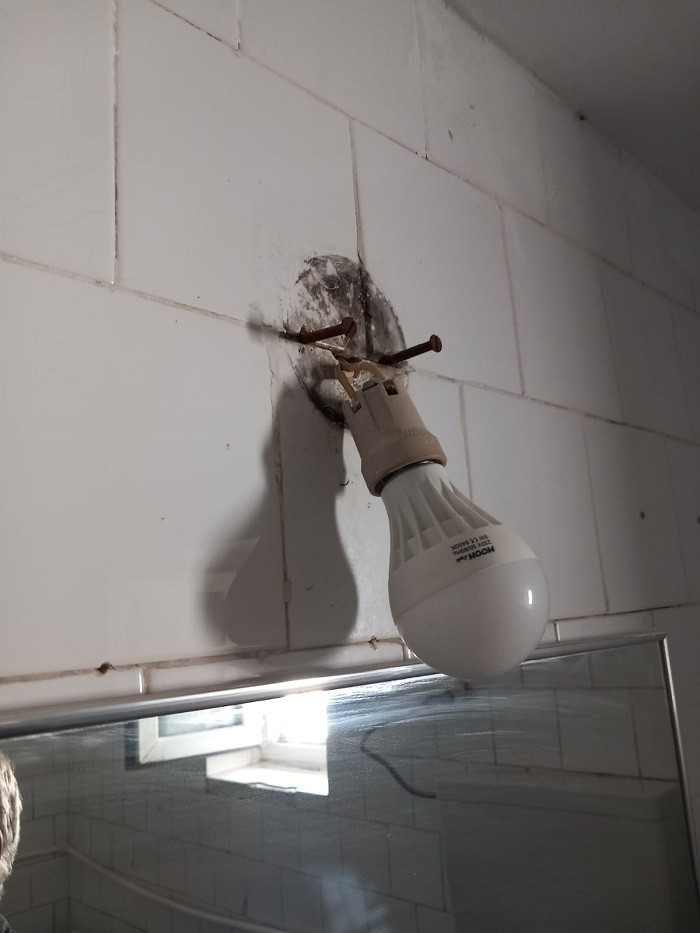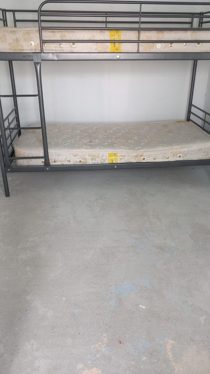 - saltele pătate, fără huse de protecţie; pereţi neigenizati, mobilier cu colţuri rupte, scaune fără spătar, parchet neigenizat, degradat, praf grosier pe pervaze, grilă calorifer ruginită, lipsă plase insecte la geamuri, lipsă sticlă la un geam, gresie hol degradată cu plintă ruptă; în bucătărie gresie şi faianţă ruptă, pe alocuri, recepient colectare deşeuri menajere fără capac, pulpe pui congelate la bax, păstrate la temperatura ambientală; în grupul sanitar, prezenţa infiltraţiilor, faianţă degradată;