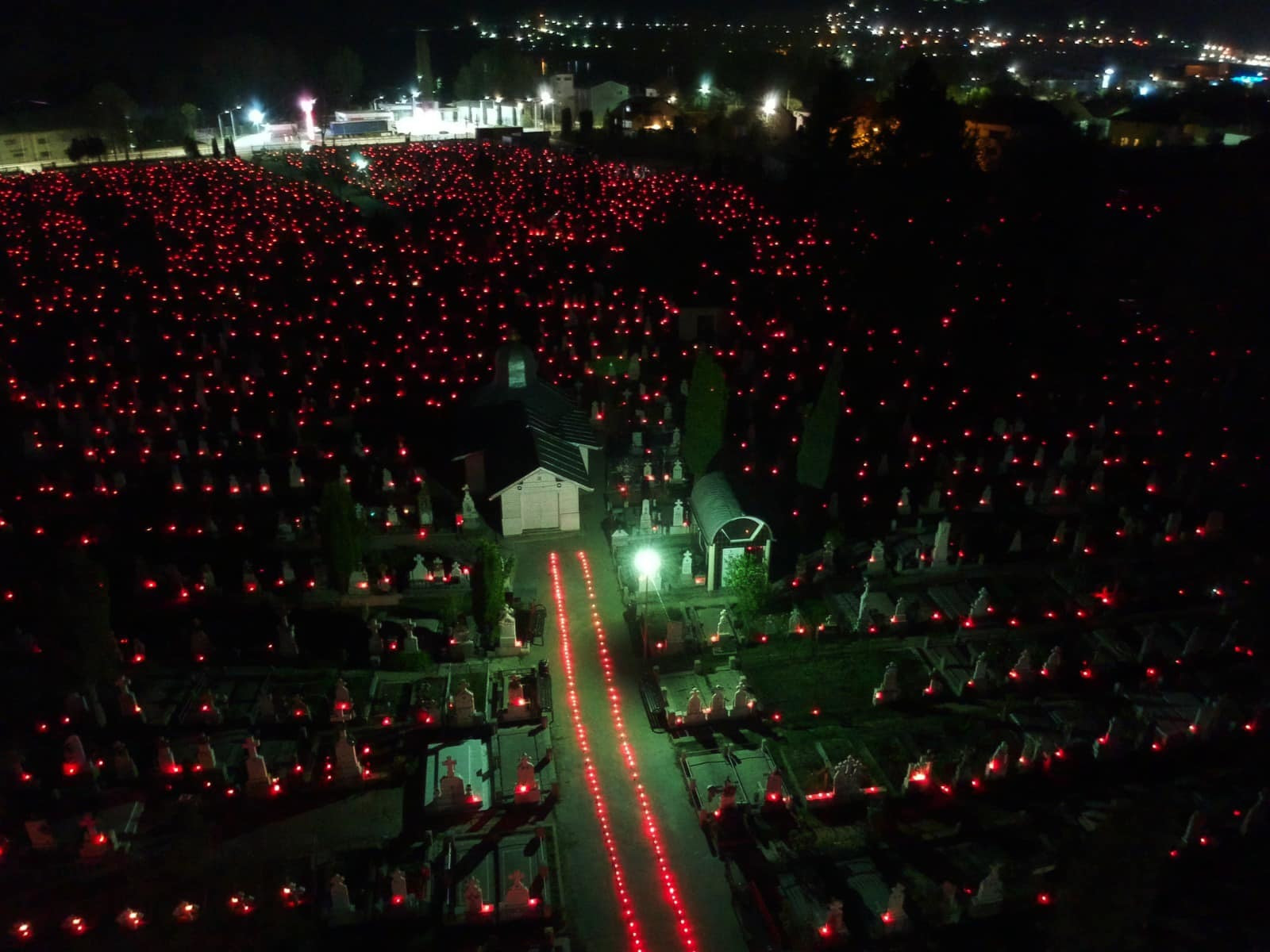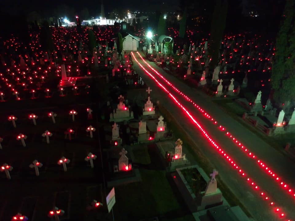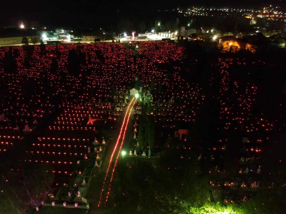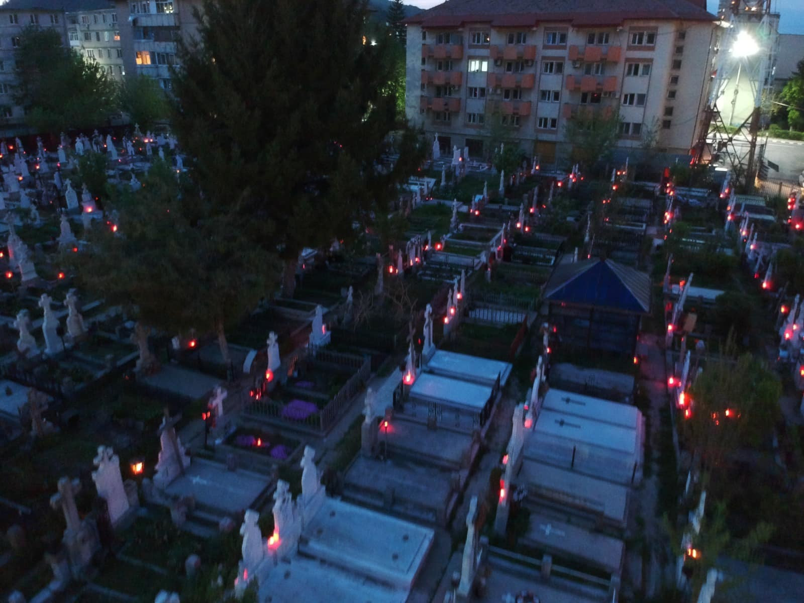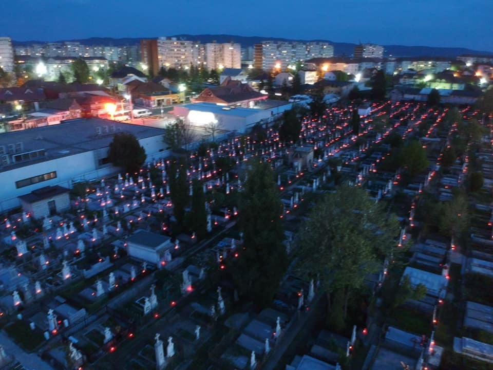 Inițiativa a fost a primarului Mircia Gutău, iar candelele au fost aprinse și puse la fiecare mormânt de angajații Piețe Prest și voluntari ai parohiilor, conform News.ro.