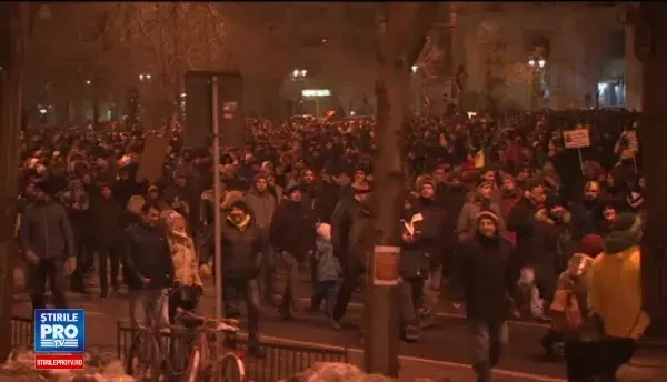 Dupa ce au protestat mai bine de o ora in Piata Universitatii si au scandat impotriva celor doua controversate ordonante, miile de romani au pornit intr-un mars spre Consiliul National al Audiovizualului si Ministerul Justitiei, minister ce a promovat actele de clementa si cele prin care se incearca, spun ei, dezincriminarea mascata a abuzului in serviciu si a conflictului de interese.