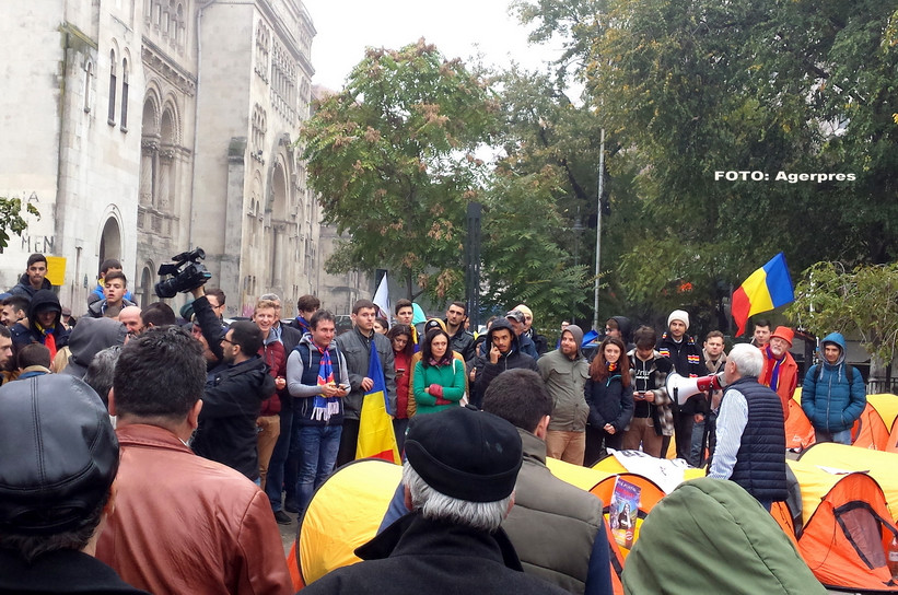 Peste 100 de persoane au ramas pe timpul noptii in corturile instalate langa fantana de la Universitate.