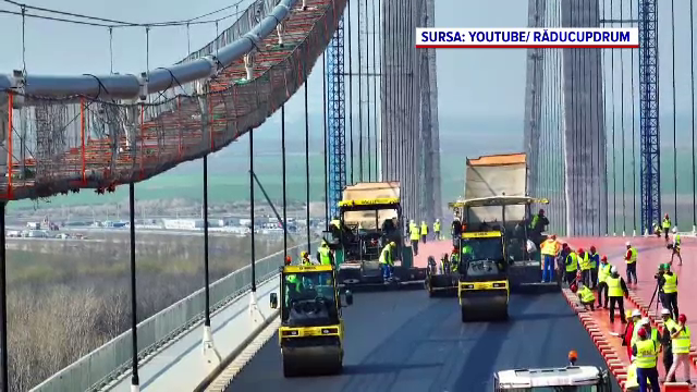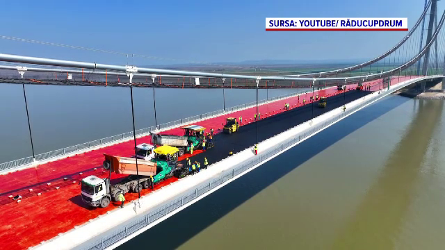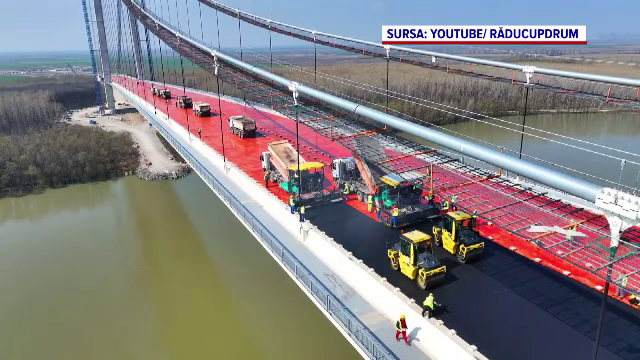 A început asfaltarea podului de la Brăila, „Golden Gate-ul României”. GALERIE FOTO