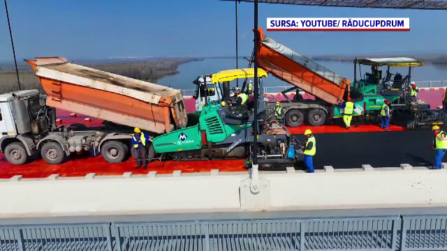 A început asfaltarea podului construit peste Dunăre, care va lega Dobrogea de Moldova şi Muntenia.