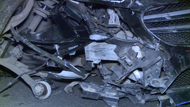 Unul dintre vehicule a fost aruncat în stâlpii de protecție de pe marginea drumului. Iar celălalt a rămas fără o roată.