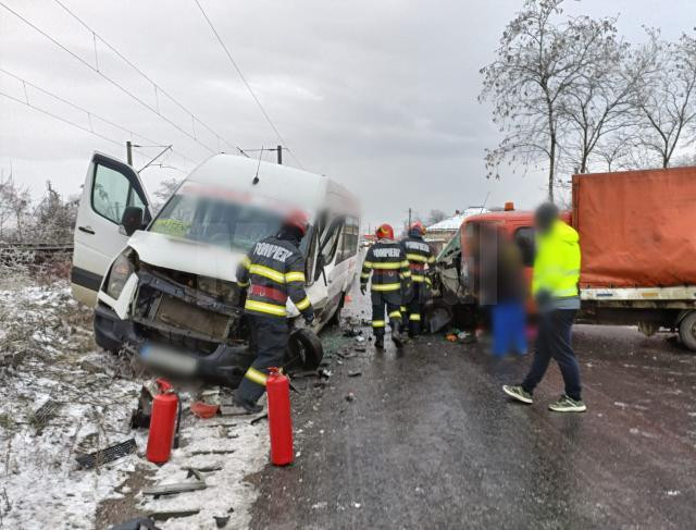 Potrivit acestora, în accident au fost implicate un microbuz de transport persoane şi o autoutilitară.