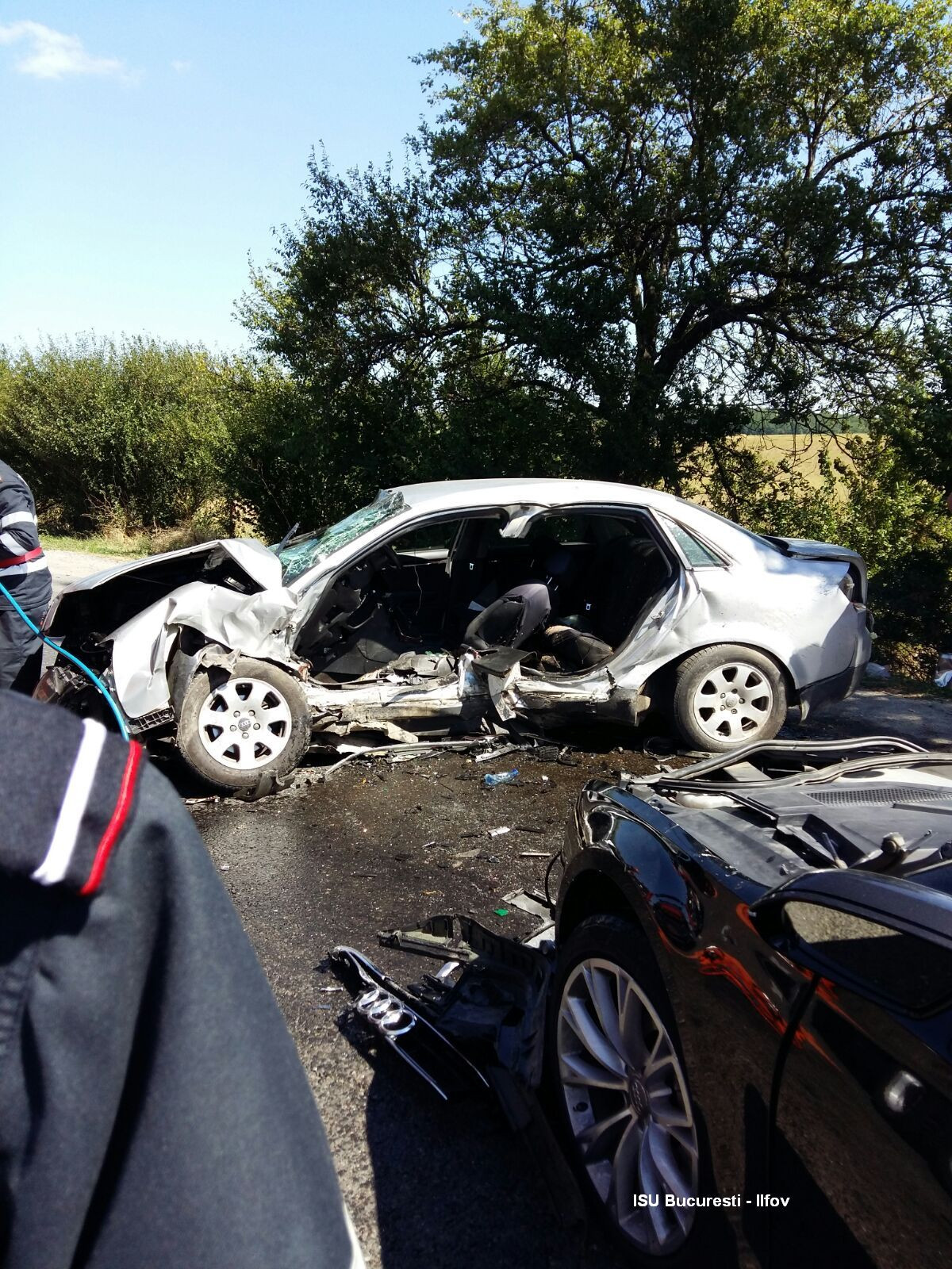 Din primele informatii, soferul a facut stanga, posibil sa fi incercat sa intoarcape linie continua. De pe banda 2, din spate, venea Audi-ul negru, iar soferul din Audi-ul negru n-a mai putut sa evite impactul. Bucati din ambele masini au fost azvarlite la zeci de metri distanta pe carosabil.
