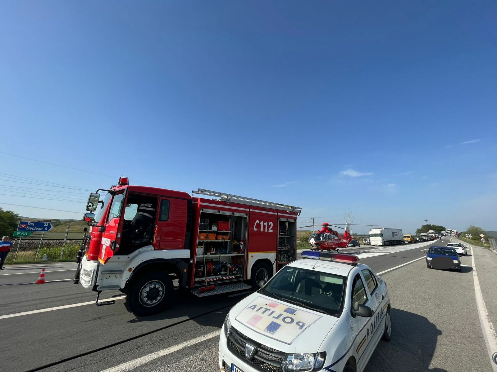 Traficul rutier pe DN 17 a fost blocat pe durata intervenţiei elicopterului SMURD.