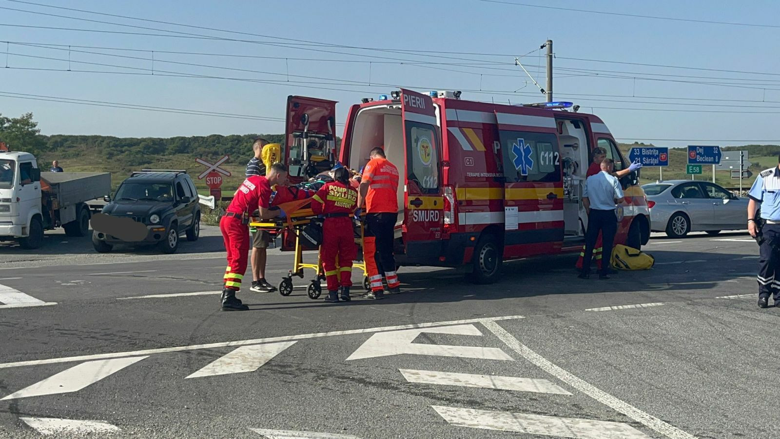 "Femeia în vârstă de aproximativ 54 de ani, găsită în stop cardiorespirator, nu a răspuns protocolului de resuscitare aplicat mai bine de 50 de minute, astfel că medicul care încadrează echipajul de terapie intensivă mobilă SMURD a fost nevoit să îi declare decesul la locul accidentului. La UPU SMURD Bistriţa au fost evacuate 6 persoane (5 adulţi şi un minor) de către echipajele SMURD şi SAJ BN. Una dintre victime, de sex feminin, care în urma tirajului preliminar prezenta cele mai grave leziuni şi traumatisme, a fost preluată de elicopterul SMURD care a aterizat pe DN 17", a precizat ISU Bistriţa-Năsăud.