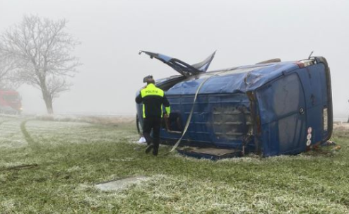 În apropiere de localitatea Topraisar, din judeţul Constanța, un microbuz în care se aflau 20 de persoane s-a răsturnat. Poliţiştii sosiţi la fața locului cred că şoferul a pierdut controlul maşinii din cauza poleiului de pe şosea.