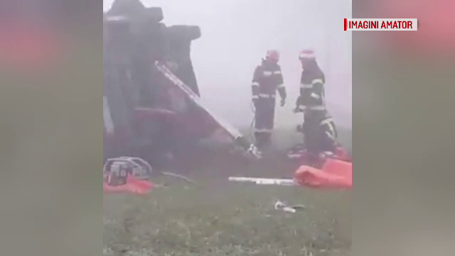 Doi dintre călători au zburat prin geamuri, iar vehiculul s-a prăbuşit peste ei.