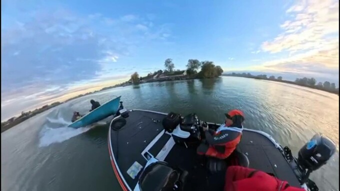 Două bărci s-au ciocnit frontal la un concurs de pescuit, în Delta Dunării. Un om a fost aruncat în aer la impact. VIDEO