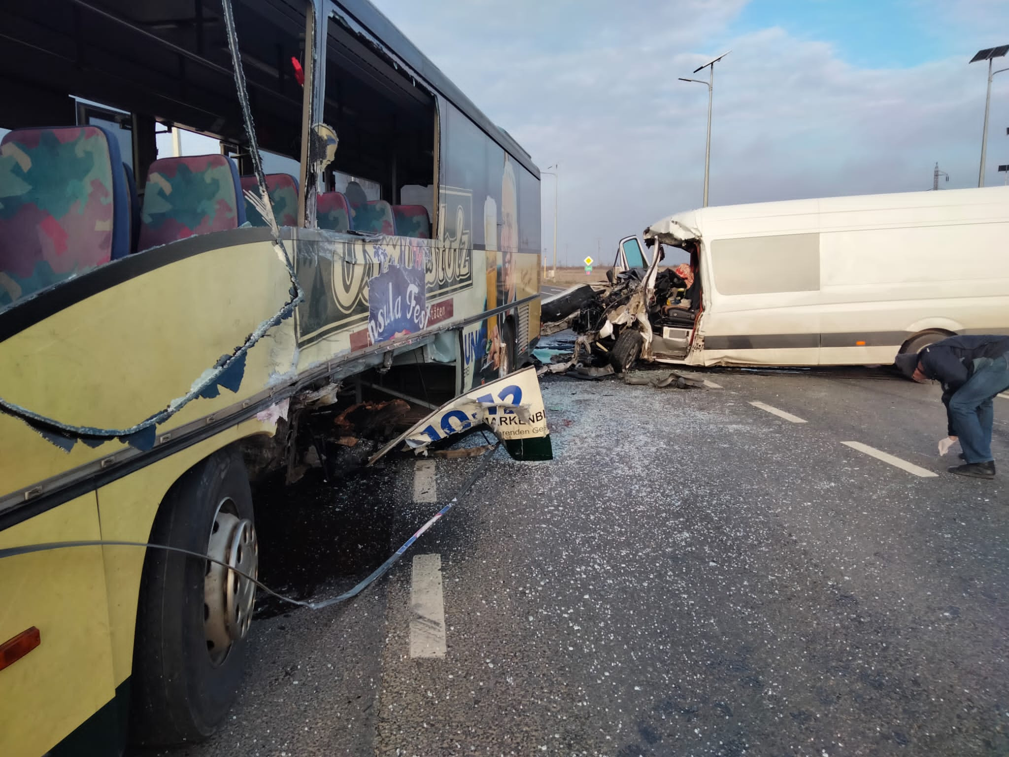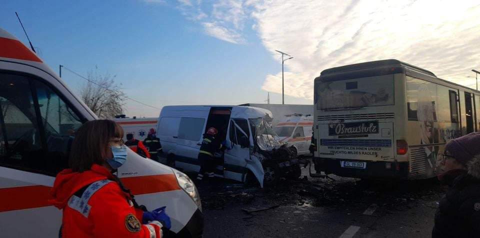 Accident grav în Galați. Un autocar și un microbuz s-au ciocnit. Mai multe persoane sunt rănite. GALERIE FOTO