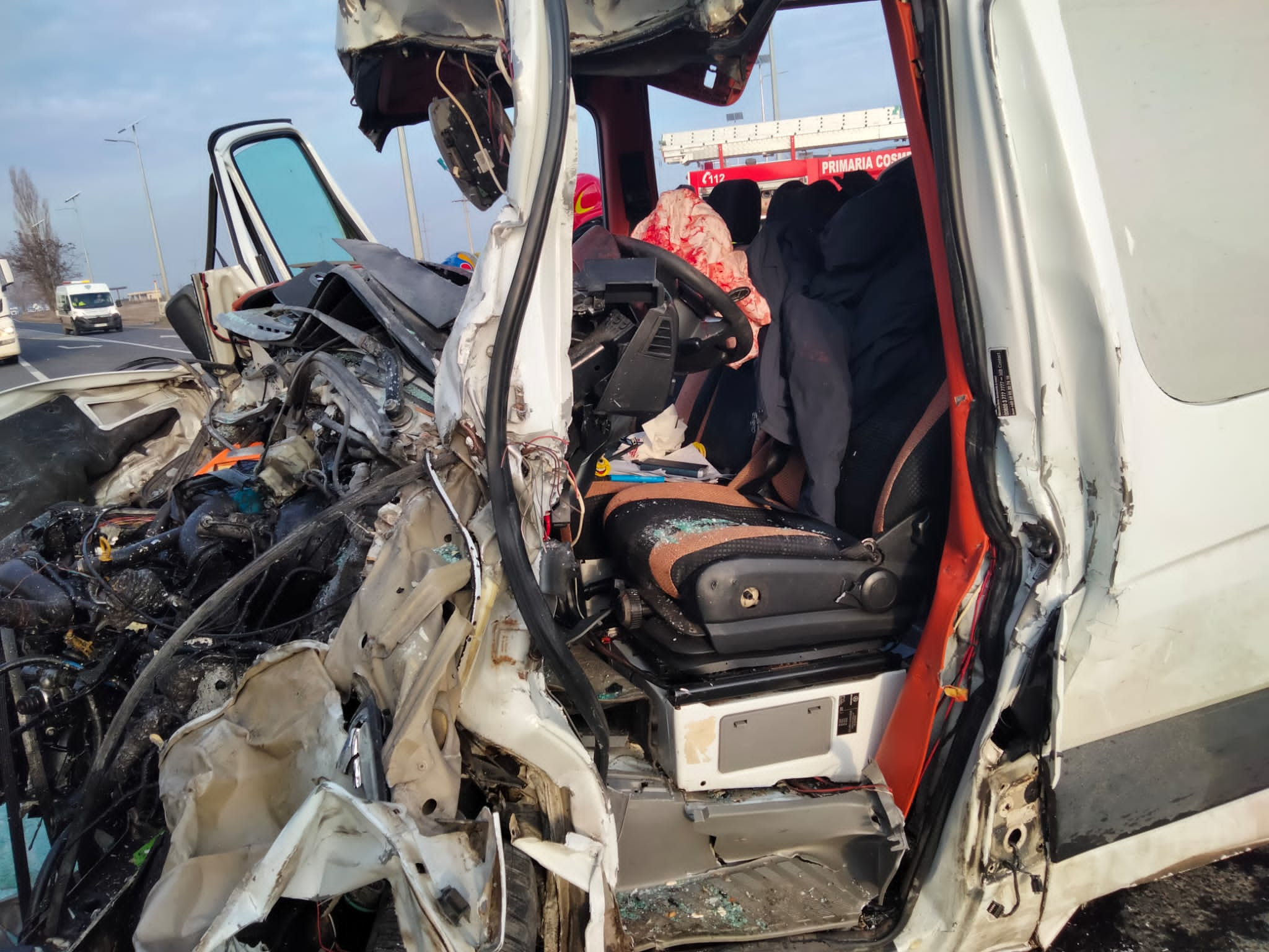 În urma impactului, conducătorul autoutilitarei a rămas blocat şi a fost nevoie de intervenţia pompierilor pentru descarcerare. Întrucât acesta prezenta mai multe leziuni, a fost preluat de un elicopter SMURD şi transportat în stare conştientă la spital.