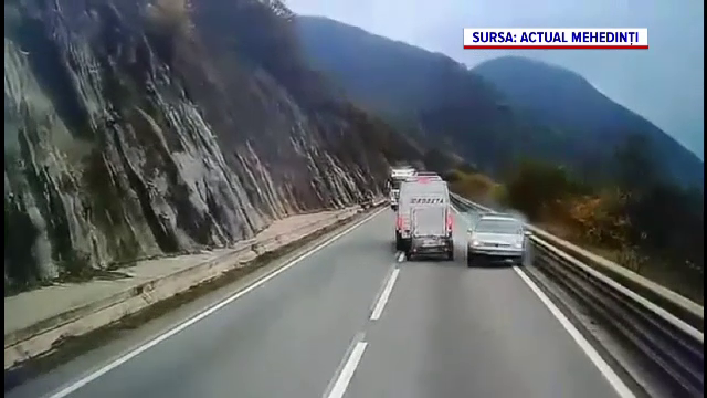 Mașina trece pe lângă un microbuz, care evită impactul în ultima clipă. Apoi, autoturismul se izbește de vehiculul de mare tonaj, care se oprește pe marginea drumului.