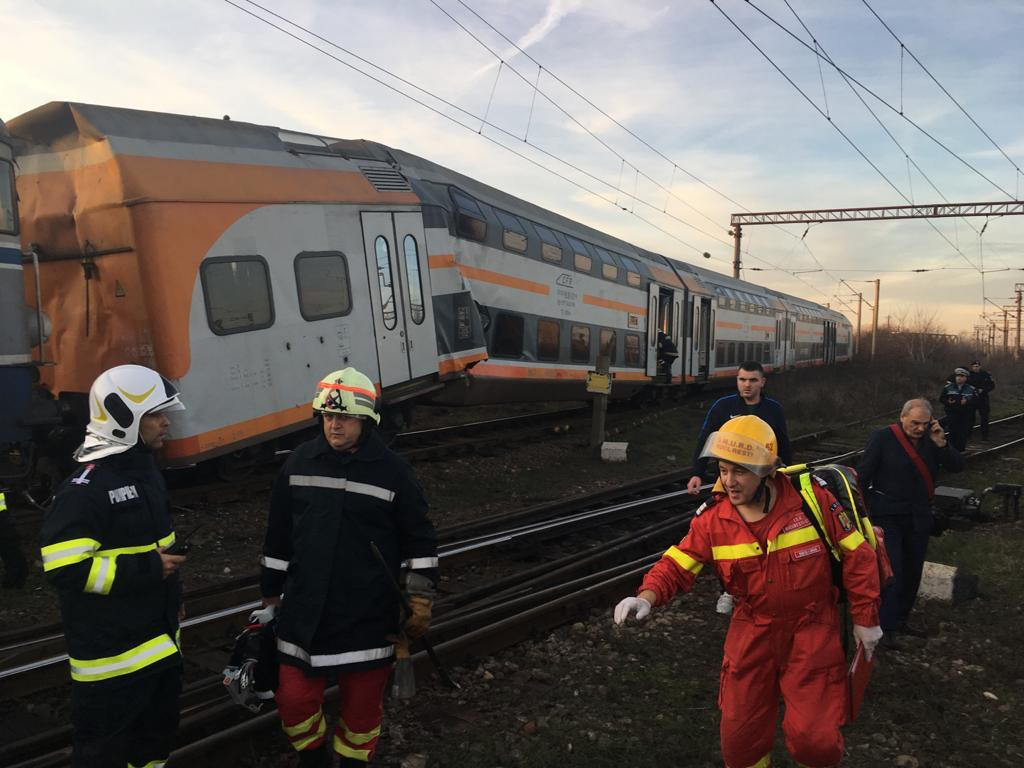 Aproape 50 de oameni au fost răniți după ce 2 trenuri s-au ciocnit în Ploiești