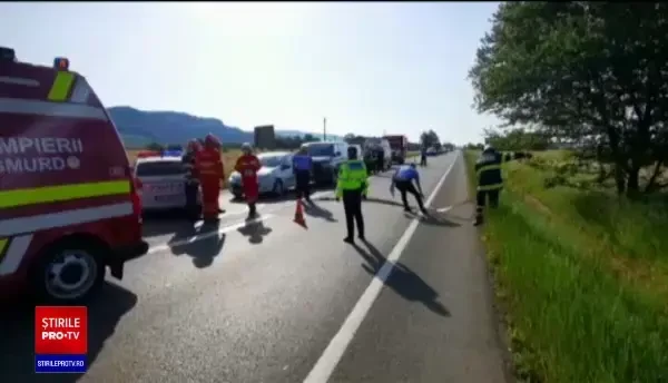 La faţa locului intervin pompierii militari cu o autospecială pentru descarcerare, patru ambulanţe SMURD, un echipaj pentru transport victime multiple şi două echipaje de la Serviciul Judeţean de Ambulanţă.