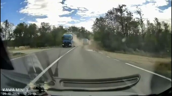 Camera de bord a surprins momentul în care o dubă, condusă de un polonez de 37 de ani, a încercat să intre brusc de pe prima bandă - care se termina - pe banda a doua, unde s-a izbit de o altă dubă, condusă de un bulgar.