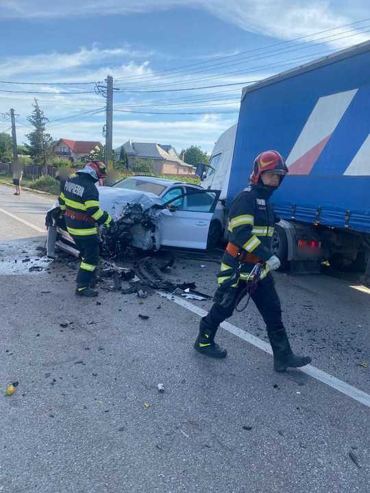 Un nou accident pe ”Drumul morții”. Patru victime după impactul dintre o mașină și două TIR-uri. FOTO