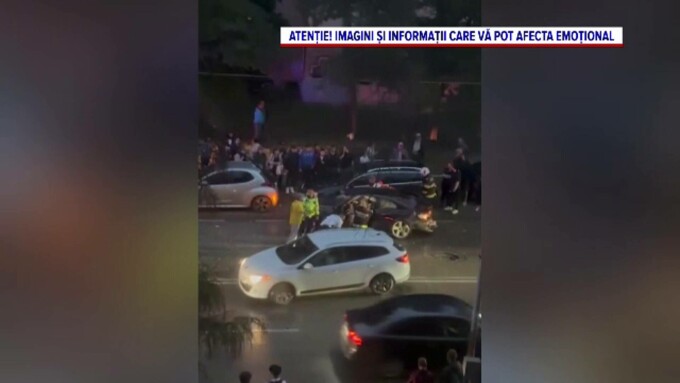 În urma impactului, alte trei autoturisme parcate au fost avariate. Oamenii au rămas blocați în vehicul, fiind nevoie de intervenția pompierilor pentru a-i elibera.