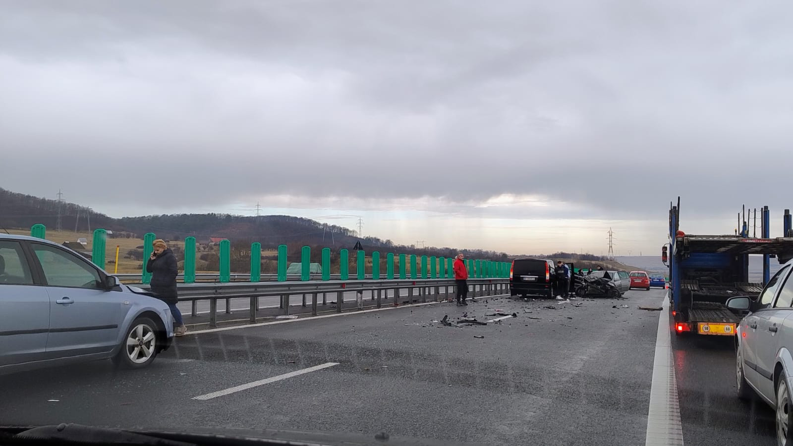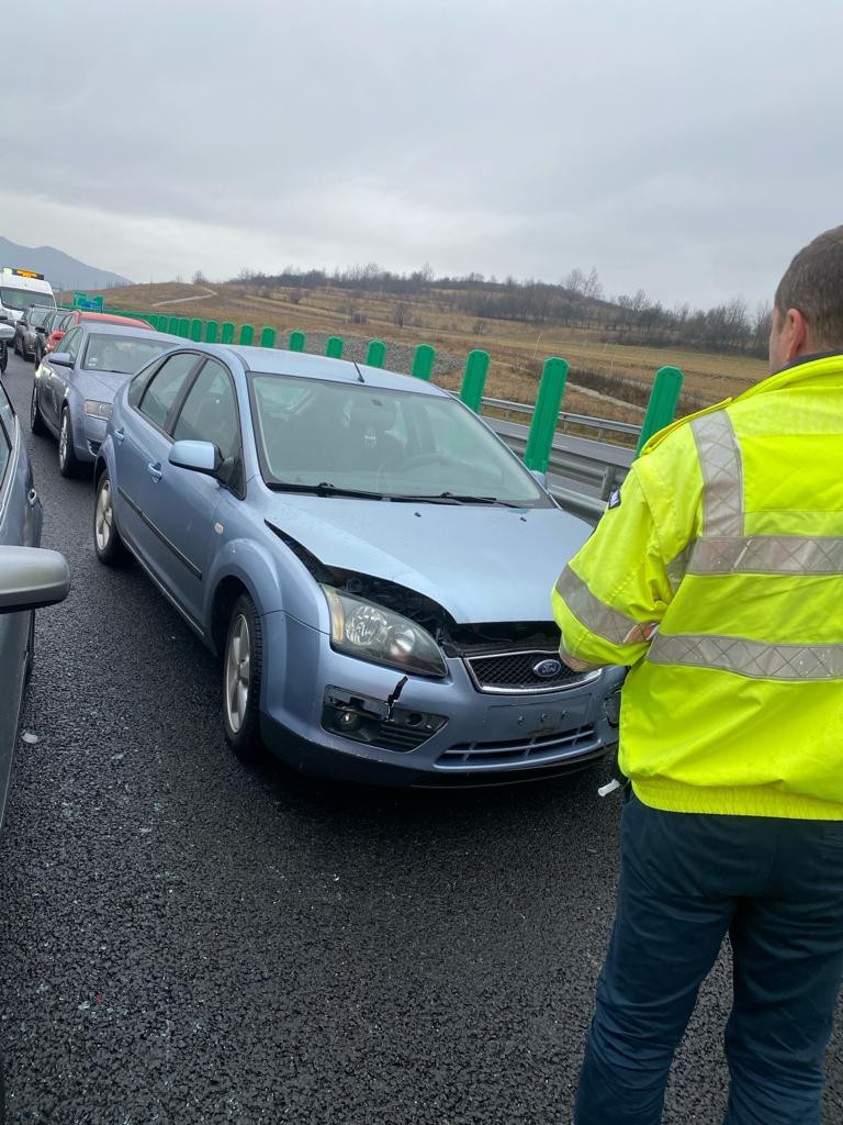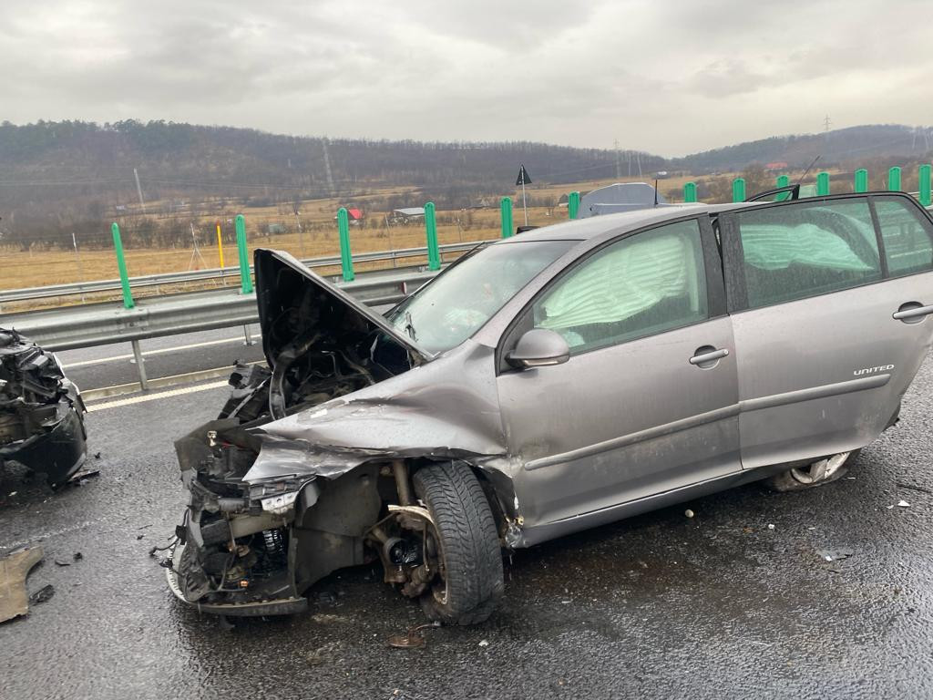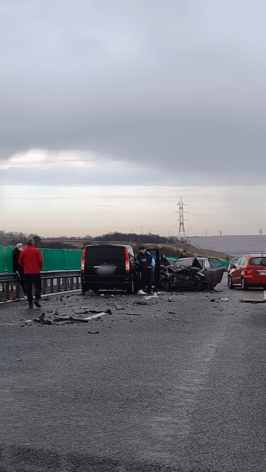 Accident pe A1. 6 mașini au fost implicate într-un carambol. 4 oameni răniți. Traficul rutier a fost reluat. GALERIE FOTO