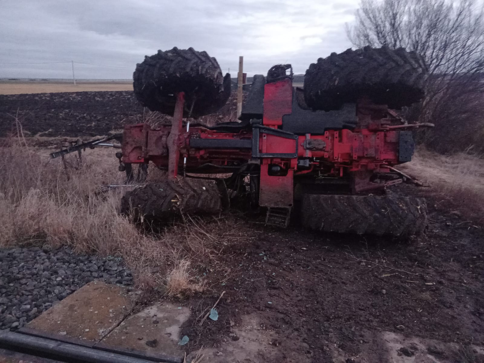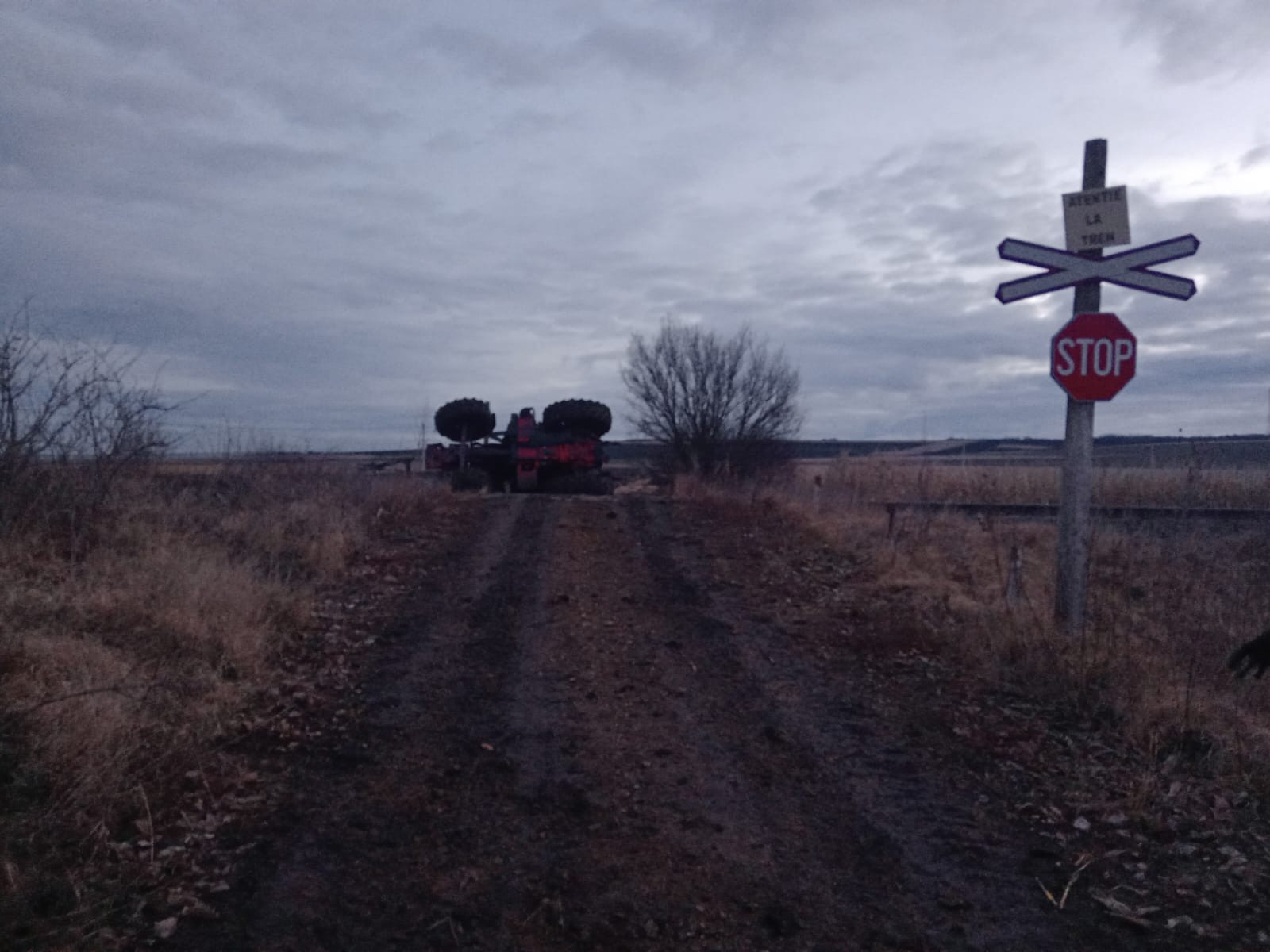 Accident pe calea ferată, în afara localităţii Ocna Sibiului. Conducătorul unui utilaj agricol, rănit. FOTO