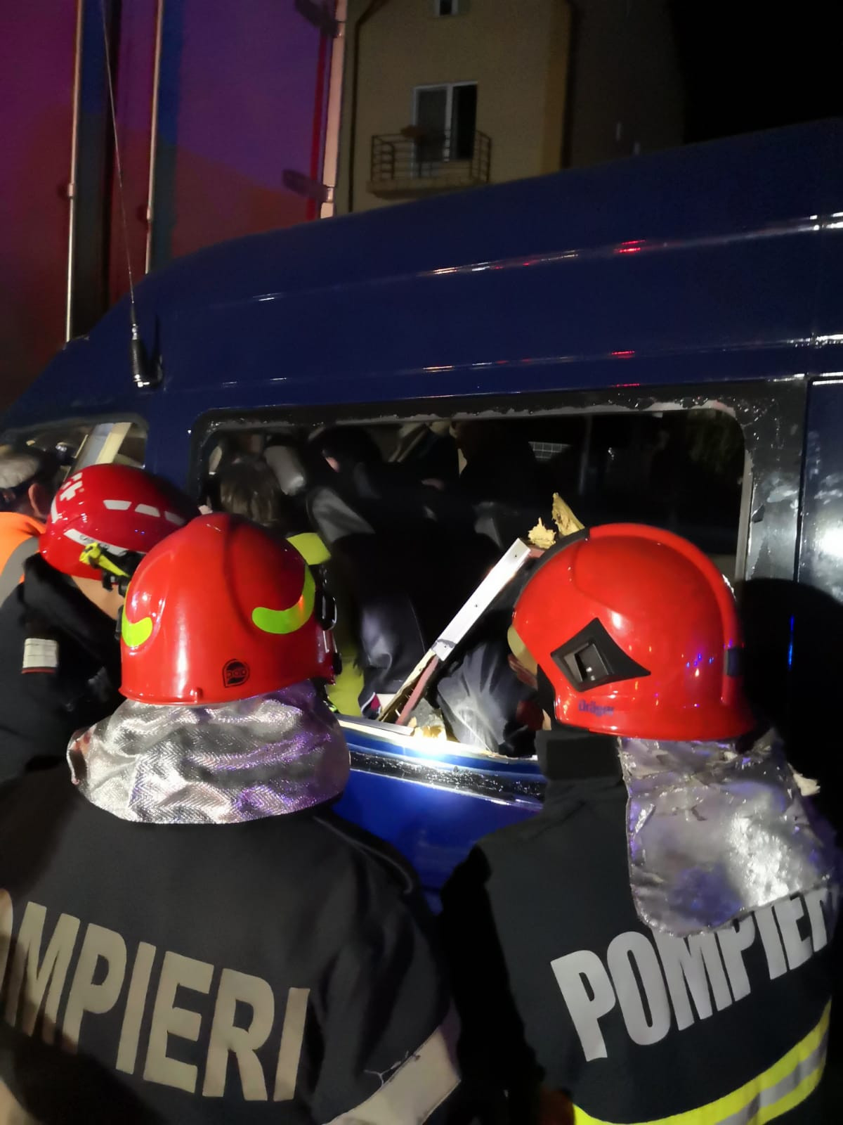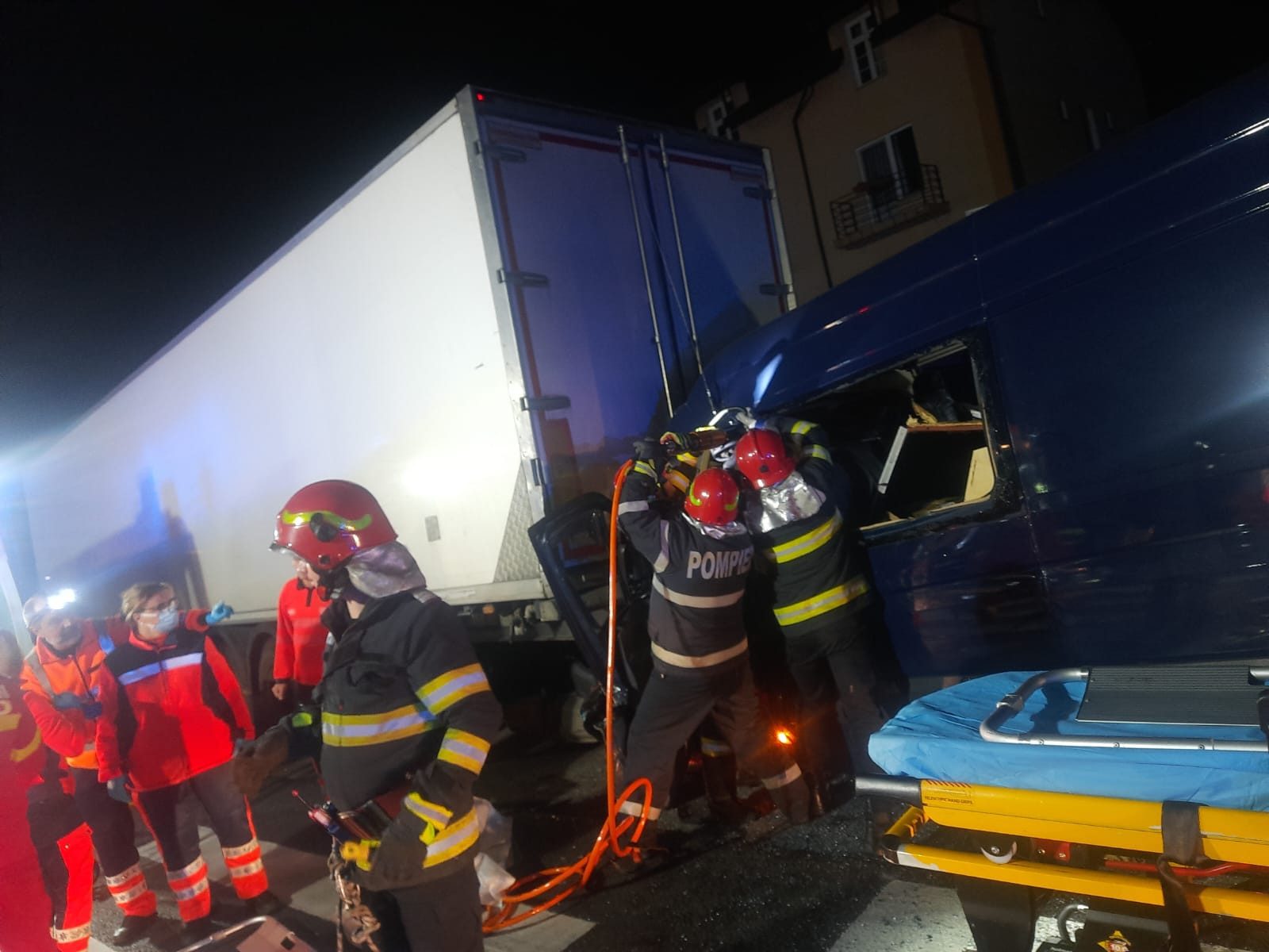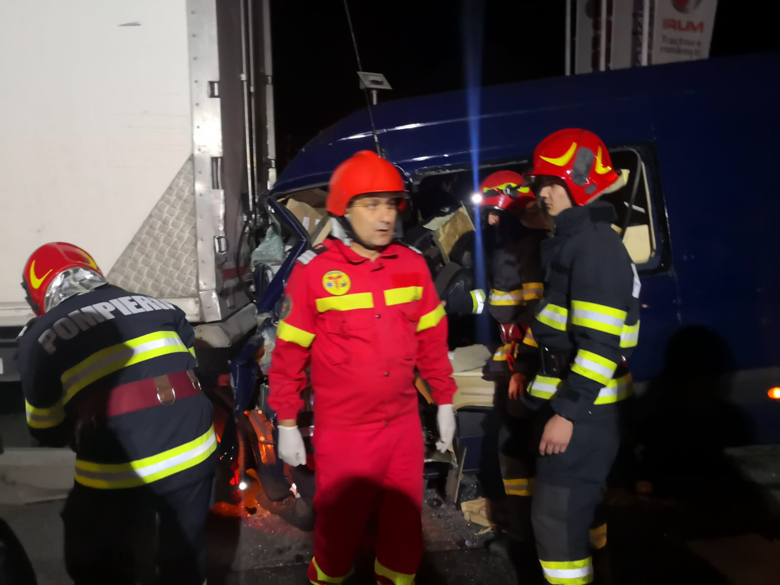 Accidentul a avut loc între un camion încărcat cu legume și un microbuz care transporta persoane și bagaje. Șase persoane au rămas încarcerate.