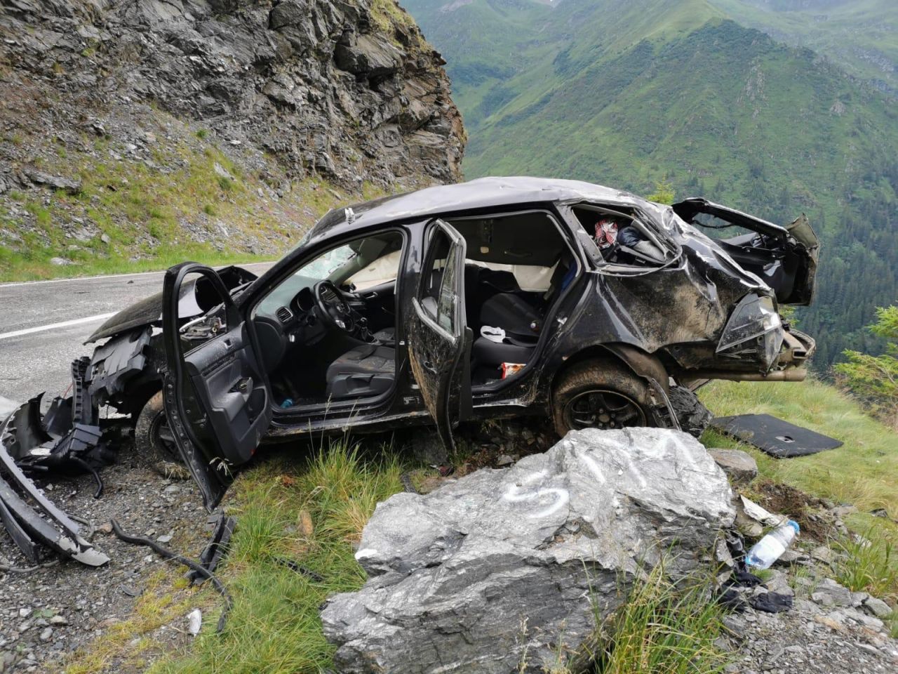 Accident pe Transfăgărășan: Un mort și doi răniți, după ce o mașină s-a răsturnat și s-a izbit de o stâncă