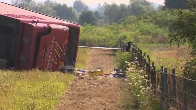 În accident a fost implicat un autobuz ce asigura o cursă regulată din oraşul german Frankfurt către capitala Kosovo, Pristina, şi care a ieşit de pe şosea şi s-a răsturnat.
