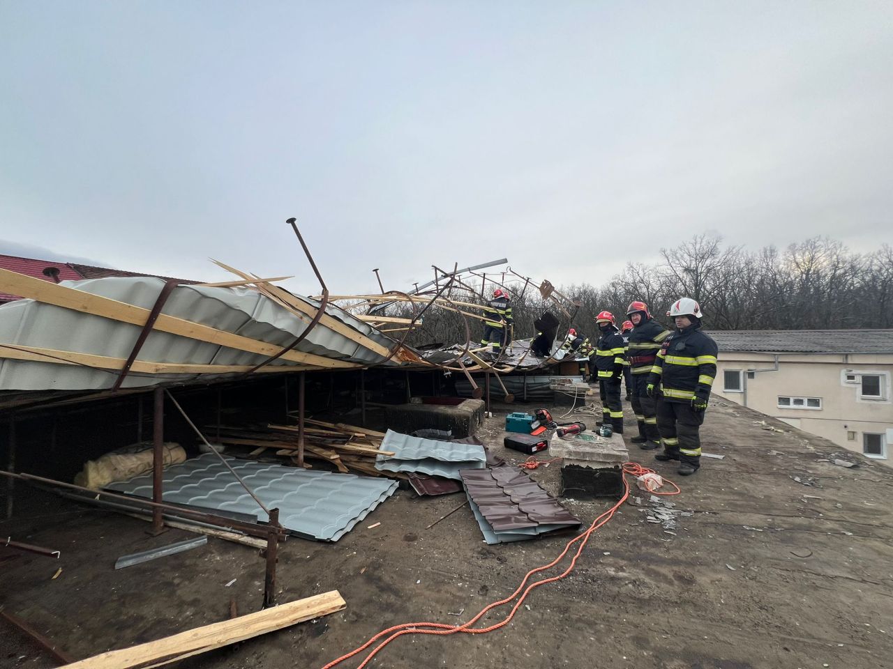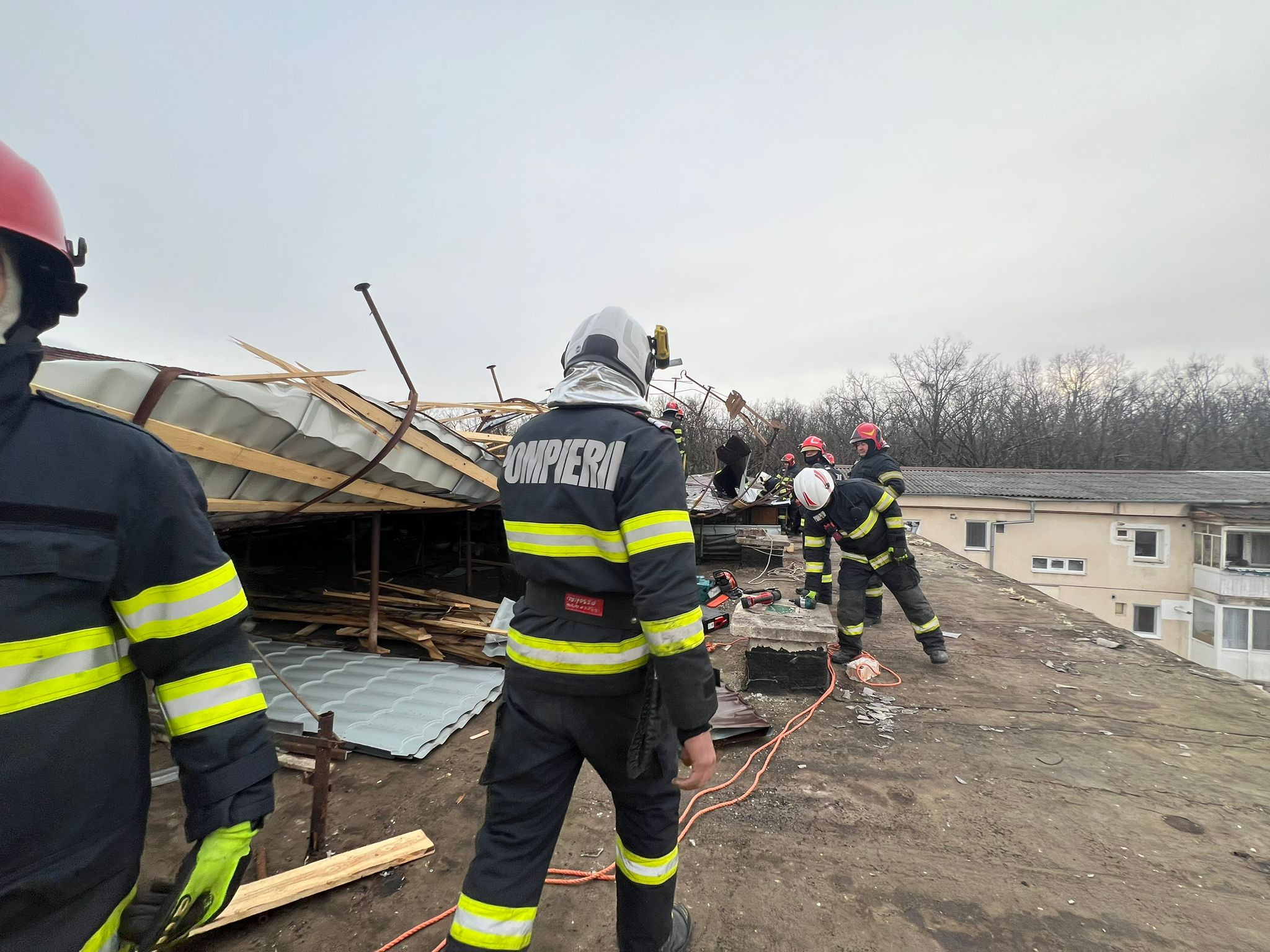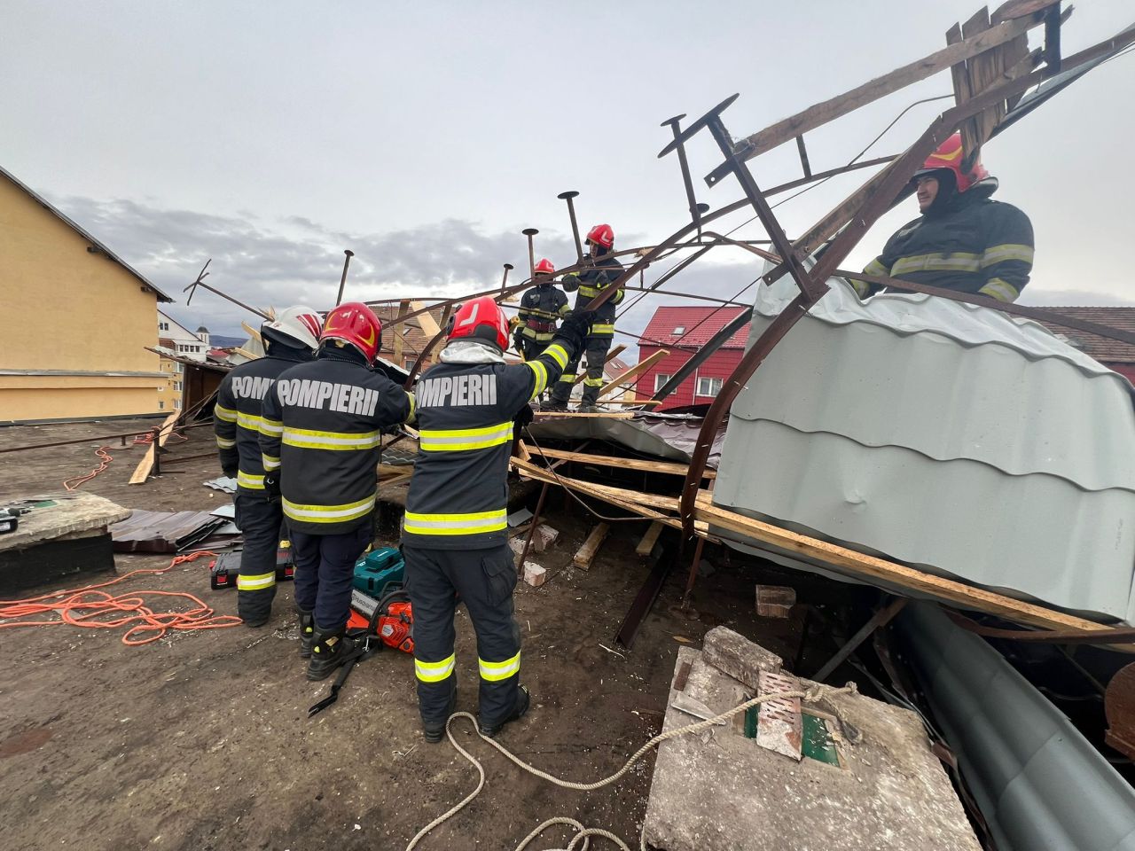 S-a intervenit cu o autospecială de stingere și una de descarcerare și pe strada Egalității din municipiul Sibiu unde, de asemenea, s-a desprins un acoperiș.