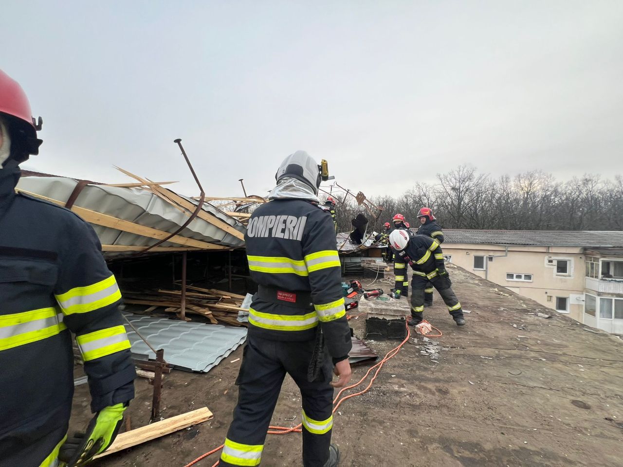 De asemenea s-a intervenit și pe strada Șteflești din municipiul Sibiu, unde s-a desprins un acoperiș de tablă de pe un bloc de 4 etaje.
