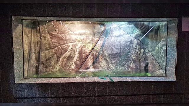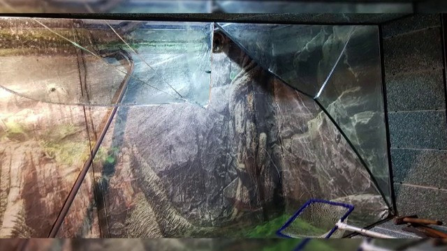 În momentul în care a cedat, patru tone de apă au ajuns pe holurile acvariului, iar oamenii au început să fugă din instituţie.