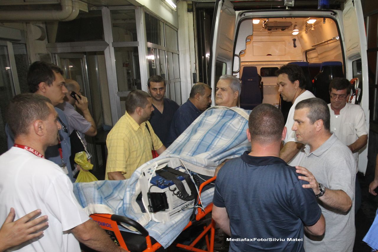 Fostul premier a fost urcat intr-o ambulanta a spitalului, cu care va fi dus la Rahova. In ambulanta se mai afla un medic de la Unitatea de Primiri Urgente (UPU), un asistent si politisti.