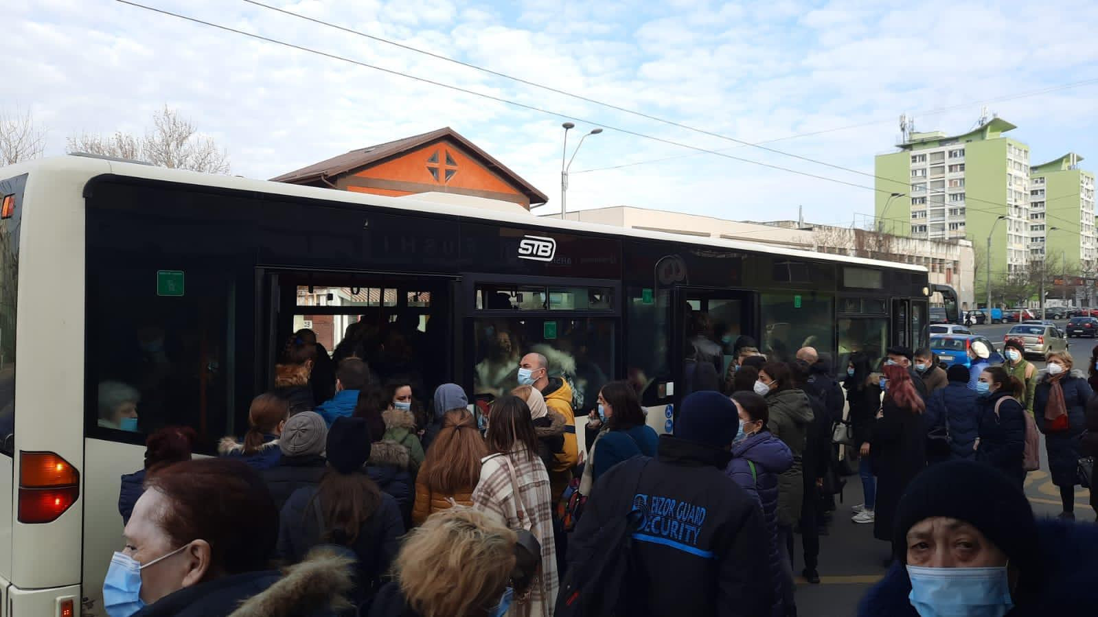 Pentru că circulația metroului a fost blocată de sindicaliști, oamenii s-au îndreptat către autobuzele STB, creându-se astfel aglomerații mari.