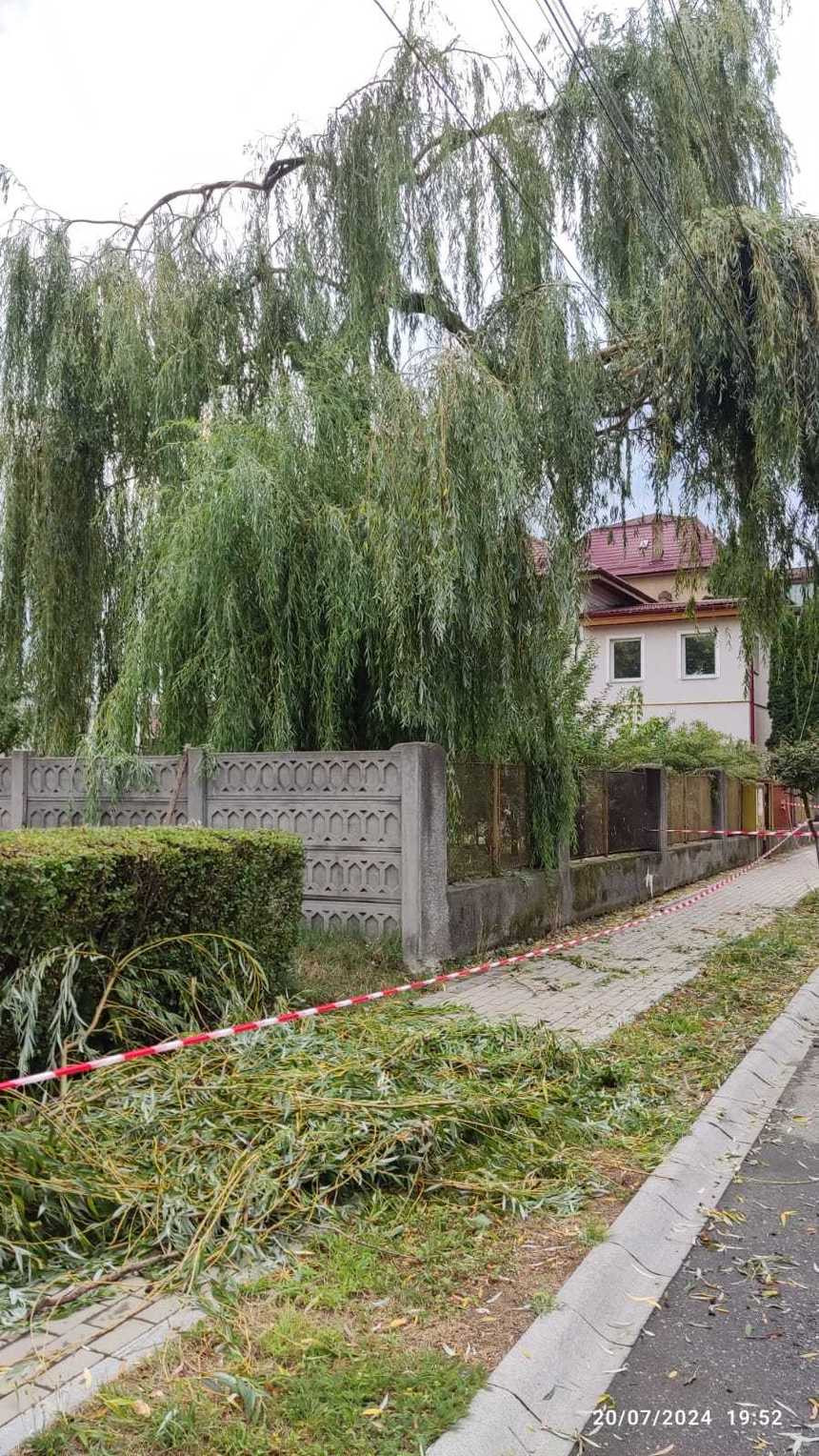 După evaluarea situaţiei, pompierii au asigurat zona şi au solicitat sprijinul echipei specializate din cadrul Enel pentru a putea începe împreună acţiunea de segmentare şi degajare a materialului lemnos.