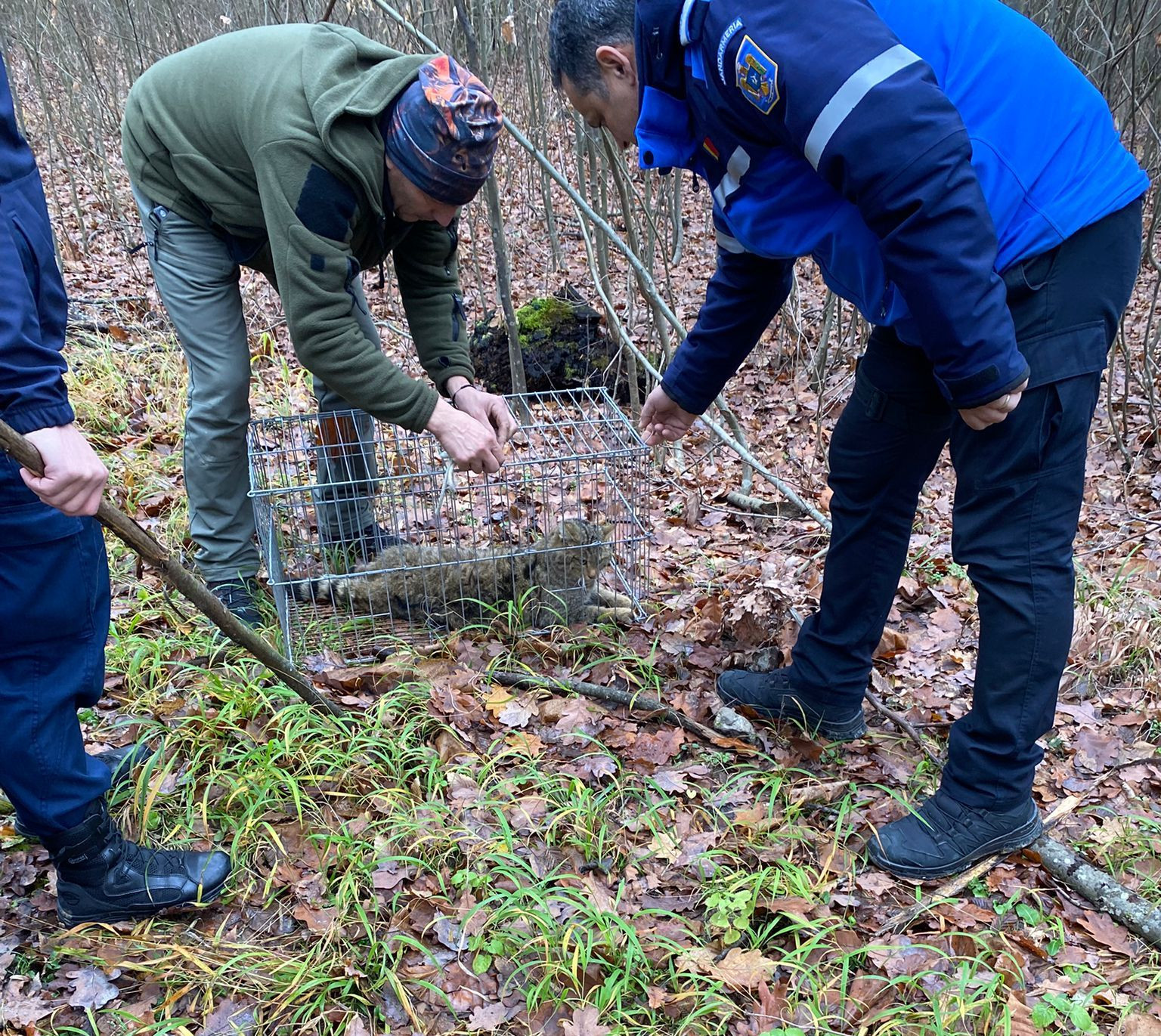 Animalul sălbatic găsit în curtea unui localnic din Tismana. Jandarmii l-au scos în cușcă. FOTO