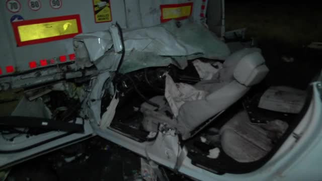 Teribilul accident a fost surprins de o cameră de supraveghere. În imagini se vede cum bolidul gonește pe șosea, lovește apoi scuarul de pe mijlocul drumului și un semn de circulație, după care intră în plin sub remorca unui TIR parcat. Două vieți au fost spulberate în câteva secunde.