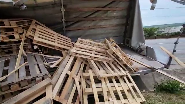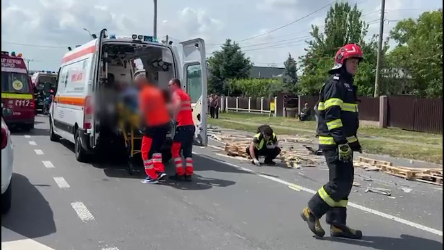 Bărbat: „Eram în autobuz, în spate. M-am trezit dintr-o dată și, când m-am uitat, am văzut că vine asta cu paleți și am văzut că se ciocnesc. Atât am apucat să bag mâna, să nu-i vină soției paleți în față."