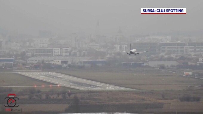 Cum a aterizat un avion pe aeroportul din Cluj-Napoca, în timpul unor rafale de 90 de km/h. Imagini spectaculoase