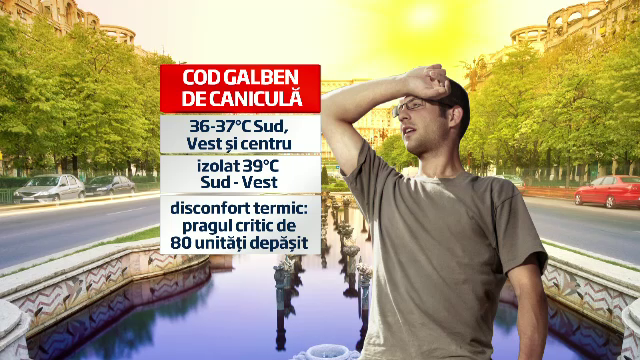 Ramane codul galben in alte 20 de judete, plus Capitala, cu temperaturi de 38 de grade si disconfort termic.