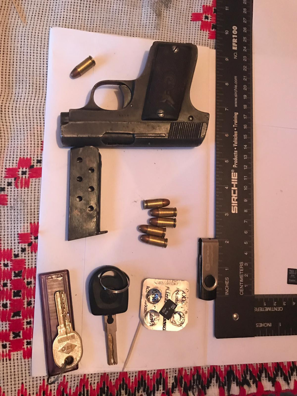 El avea la brâu atât pistolul de calibru 7.65, cât şi o borsetă cu gloanţe, conform imaginilor din momentul capturării.